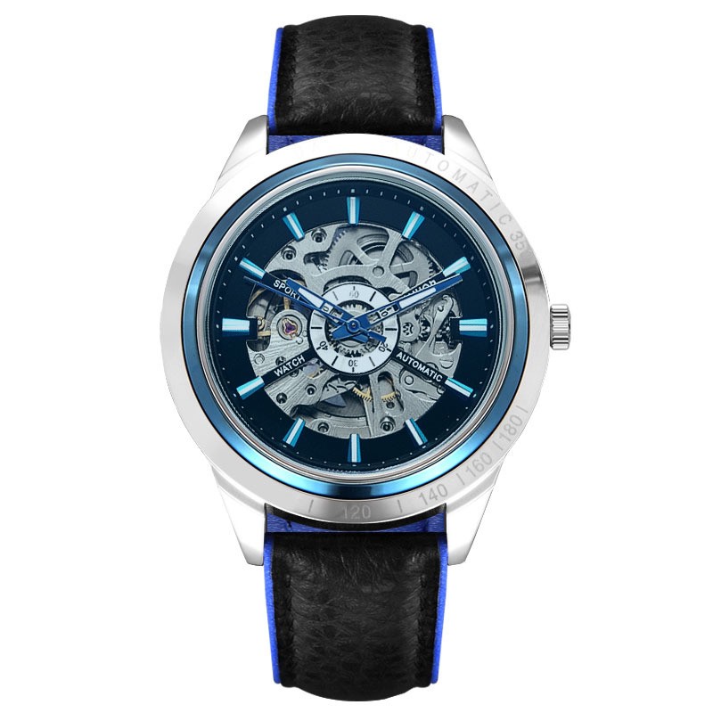 Chino Wilon镂空夜光全自动机械表=2060白壳蓝圈黑面蓝皮