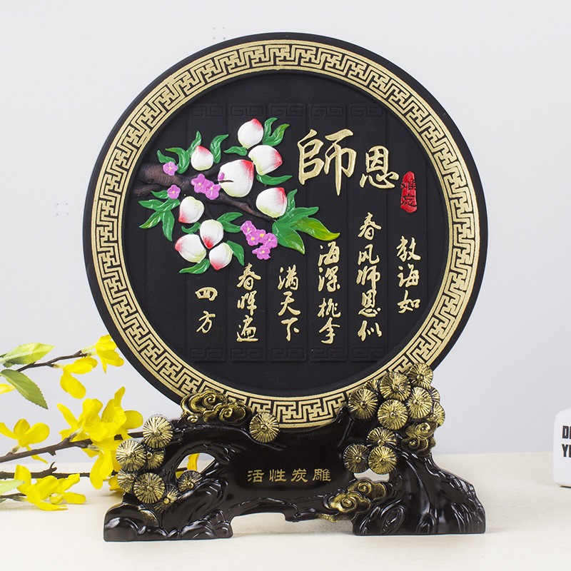 活性碳雕圆盘摆件 感谢师恩难忘工艺品教师节礼物