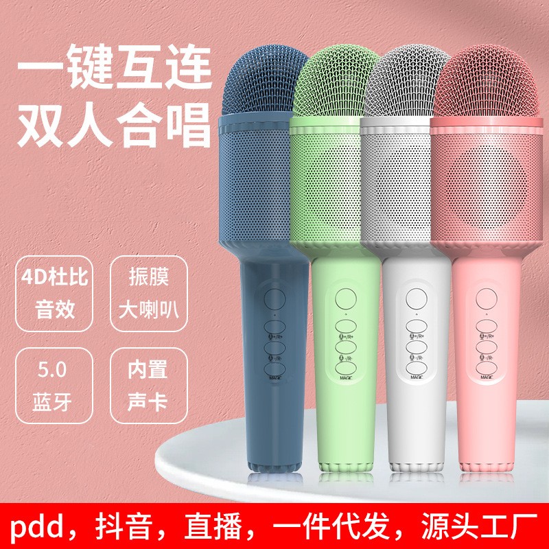 S8无线麦克风一体音响话筒家用无线蓝牙儿童K歌象牙白樱花粉