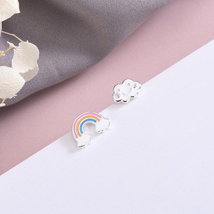 新款s925银韩版日系风彩虹云朵耳钉不对称天气滴胶耳环ES906银色