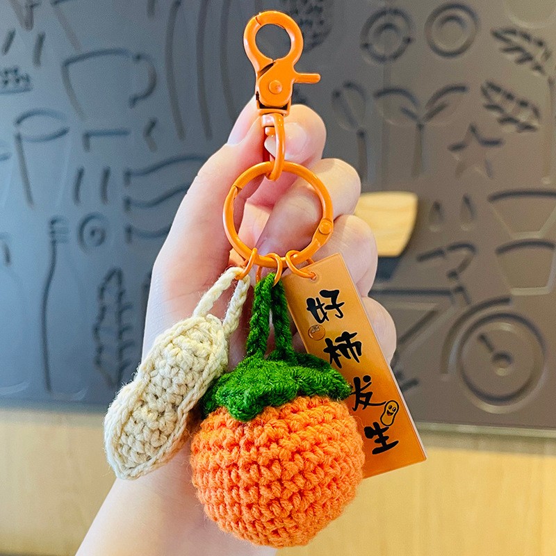 卡通毛绒好柿花生新年礼品挂件毛绒柿子钩织挂件汽车钥匙扣链配饰=GJ0957