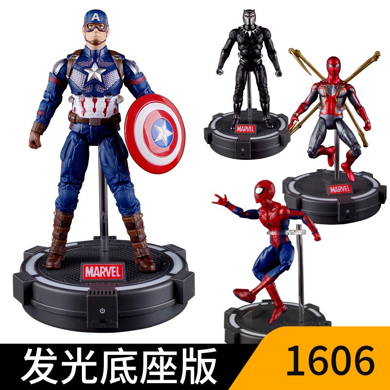 中动正版漫威复仇者联盟4钢铁侠蜘蛛侠手办公仔玩偶带发光台底座