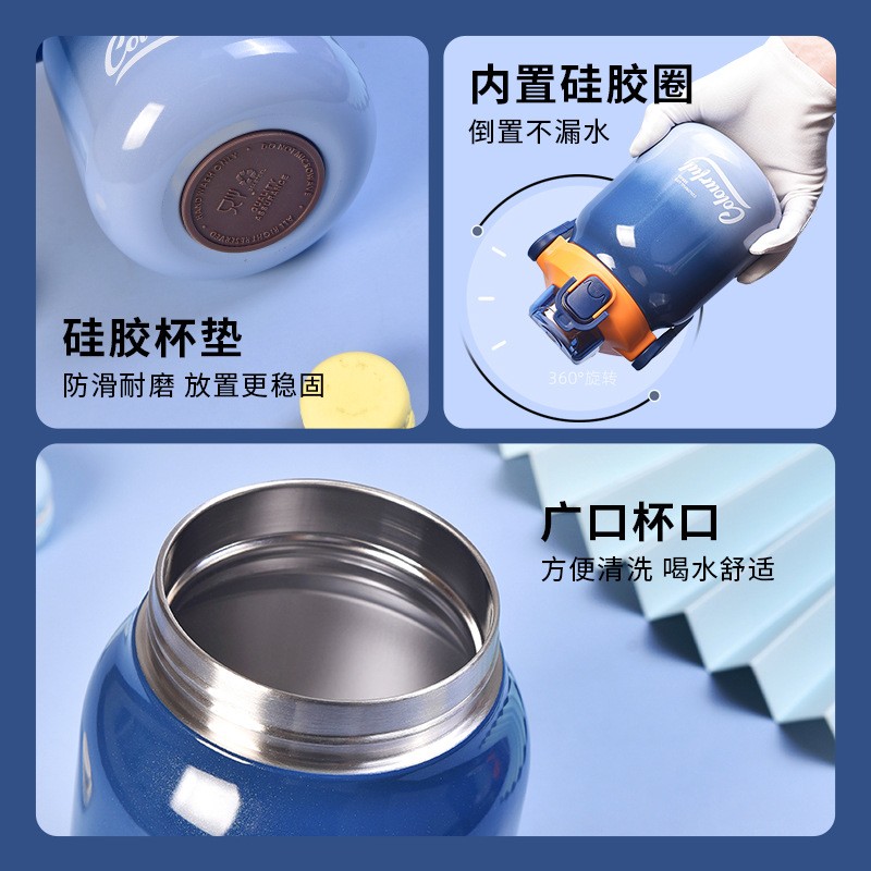 新款不锈钢大肚保温杯男女学生大容量双饮杯便携随手渐变水杯【4744-1贝诺大肚保温杯】