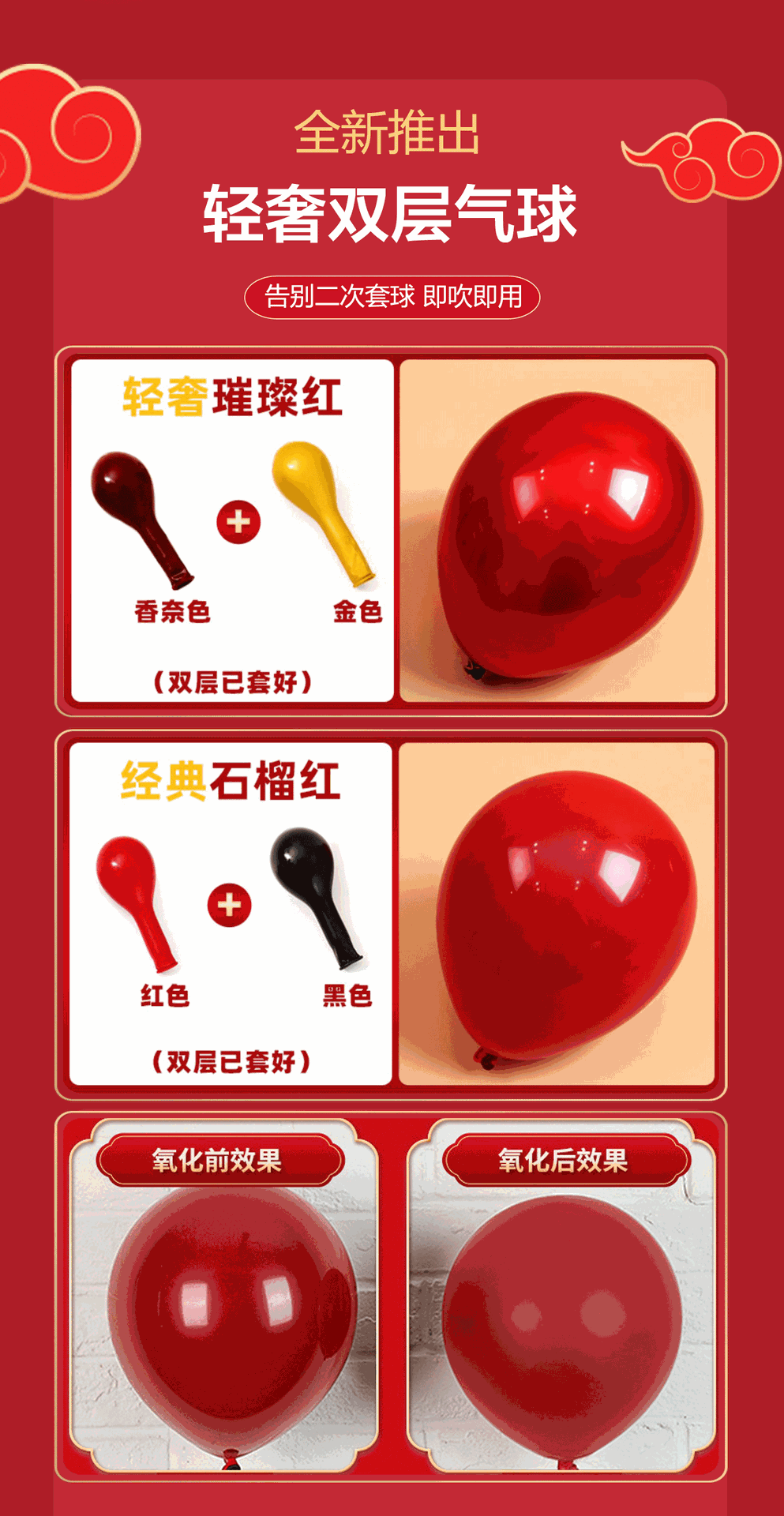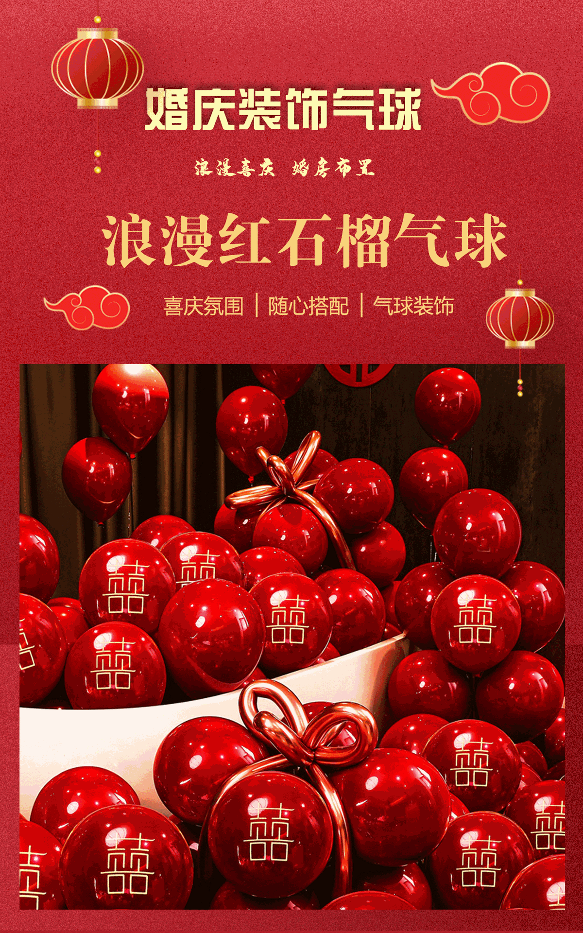 10寸结婚装饰乳胶气球宝石红气球双层加厚石榴红婚房婚庆布置气球 双层石榴红喜字气球(50个一包)