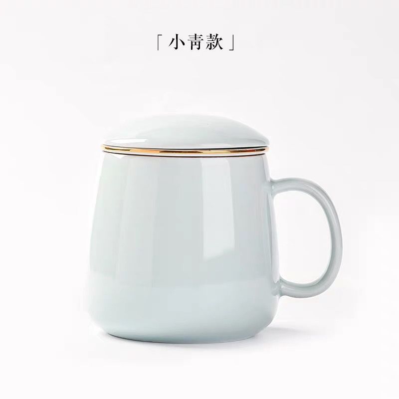 茶水分离杯陶瓷泡茶杯带盖过滤水杯陶瓷杯子办公杯现货【胖胖杯】