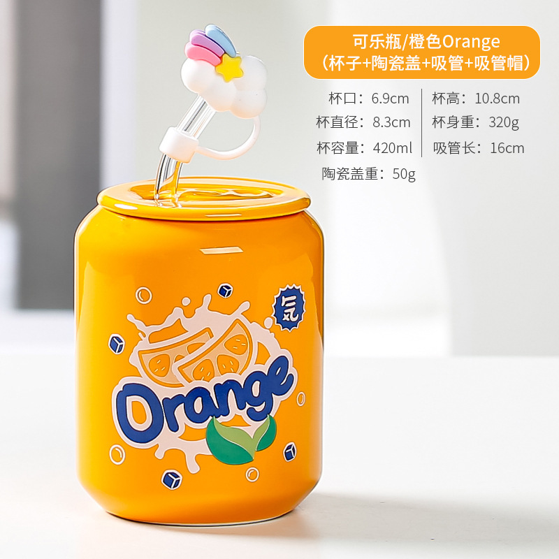 创意可乐瓶陶瓷杯水果吸管杯家用情侣马克杯伴手礼杯子进店小礼品420ML