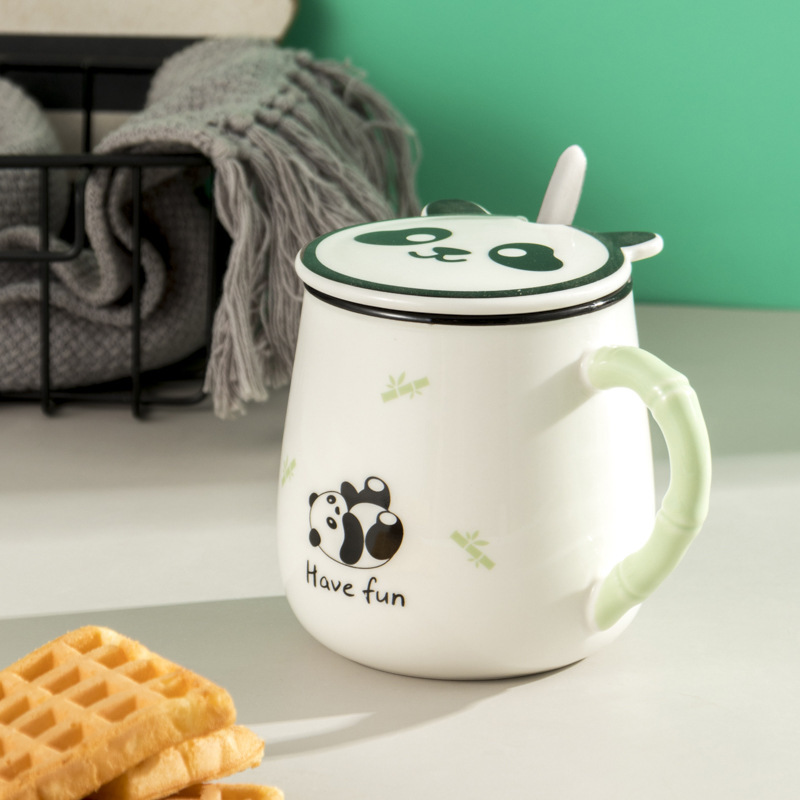 款卡通熊猫杯带盖可爱马克杯学生创意水杯可印陶瓷礼品杯子
