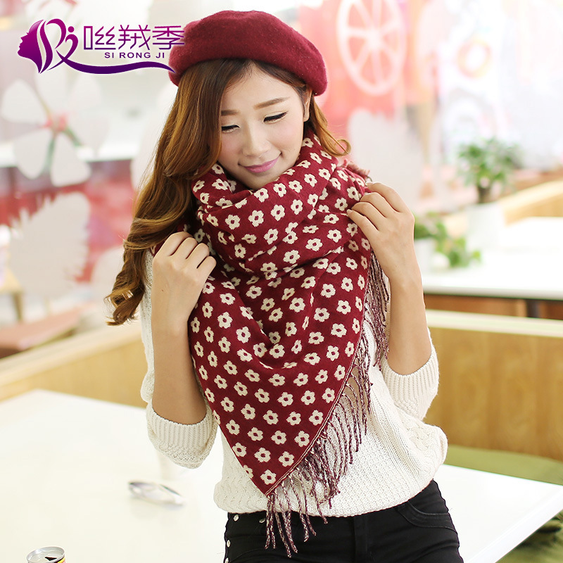 韩版秋冬流苏围巾披肩小梅花经典双面提花披肩