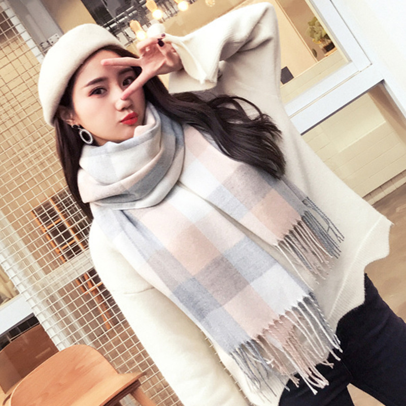 日系秋冬季加厚格子围巾加厚格子围巾披肩
