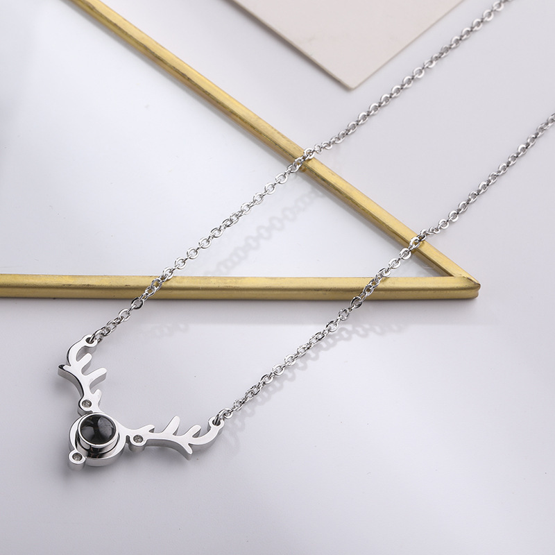 一鹿有你100种语言我爱你项链创意钛钢锁骨链[X261]