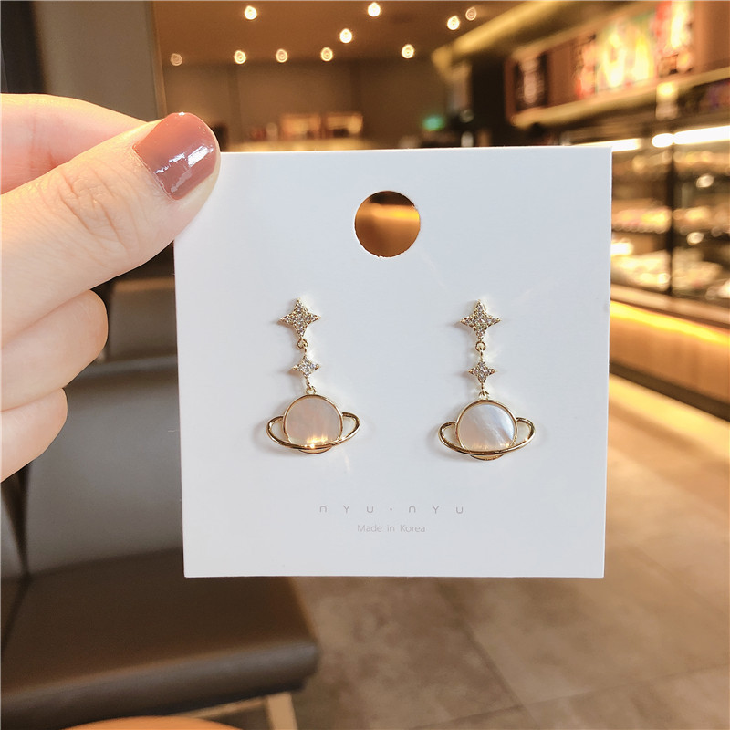 s925银针贝壳耳钉镀金锆石气质轻奢耳环高级感流苏花朵耳饰品