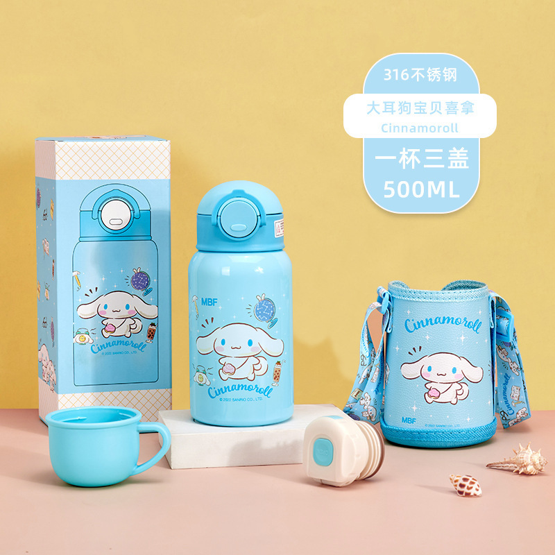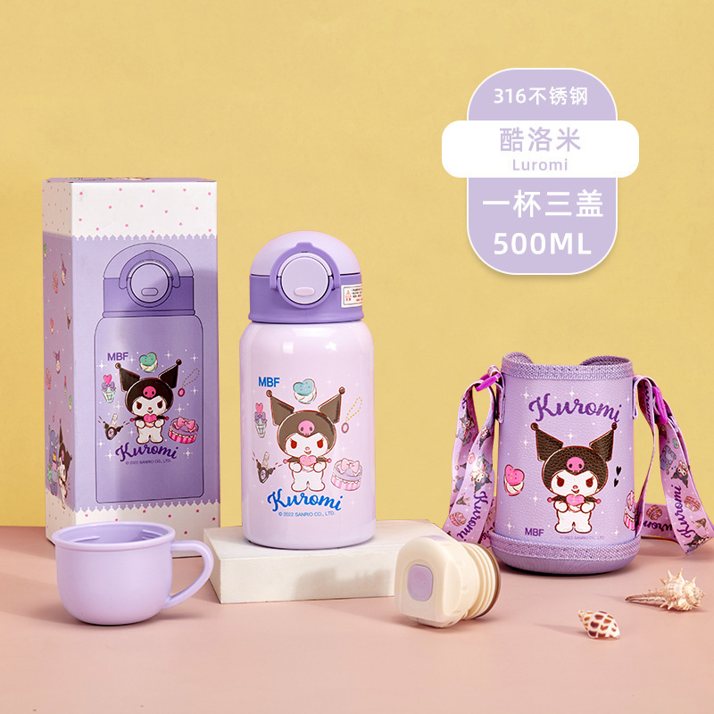 三丽鸥缤纷保温杯可爱卡通图案含吸管背带学生儿童316不锈钢水杯【SLO--001】