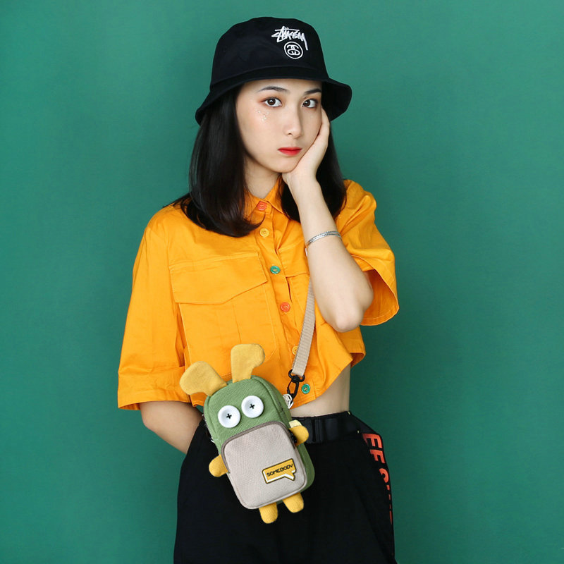 三色补丁小螃蟹搞怪包包女新款少女卡通斜挎小方包 手机包