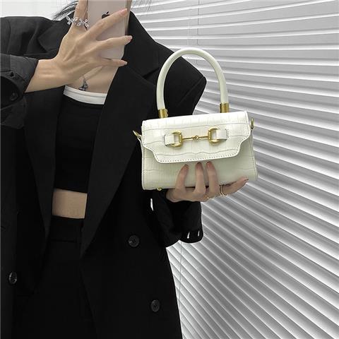 新款时尚韩版女包洋气质感绣线锁扣小方包简约斜挎包