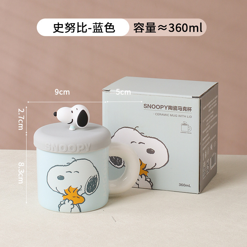 史努比正品陶瓷水杯带盖马克杯可爱大耳杯卡通情侣女生高颜值杯子【Snoopy】