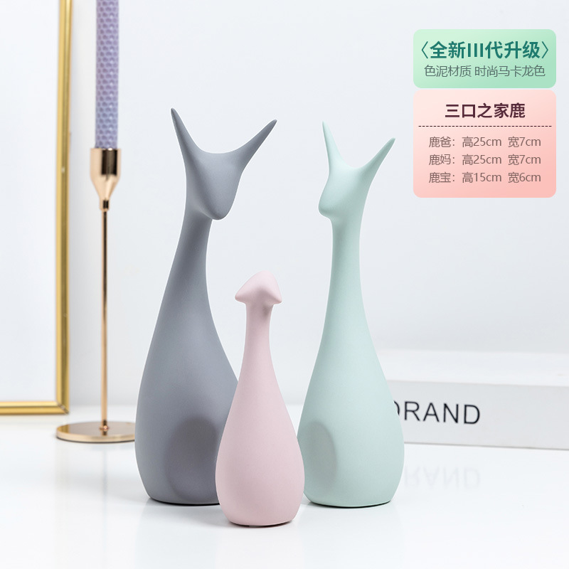 北欧陶瓷工艺品摆件 三口猫鹿 四口猫鹿 情侣兔象