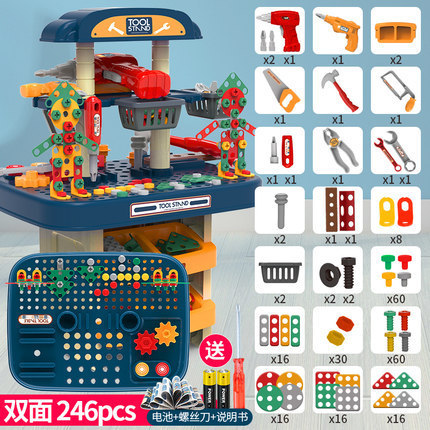 儿童螺丝钉玩具电动电钻拆装拆卸拼装益智套装组合男孩工具箱【246件】双面工作台+电砖(电池套餐)