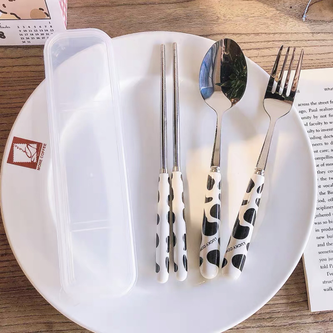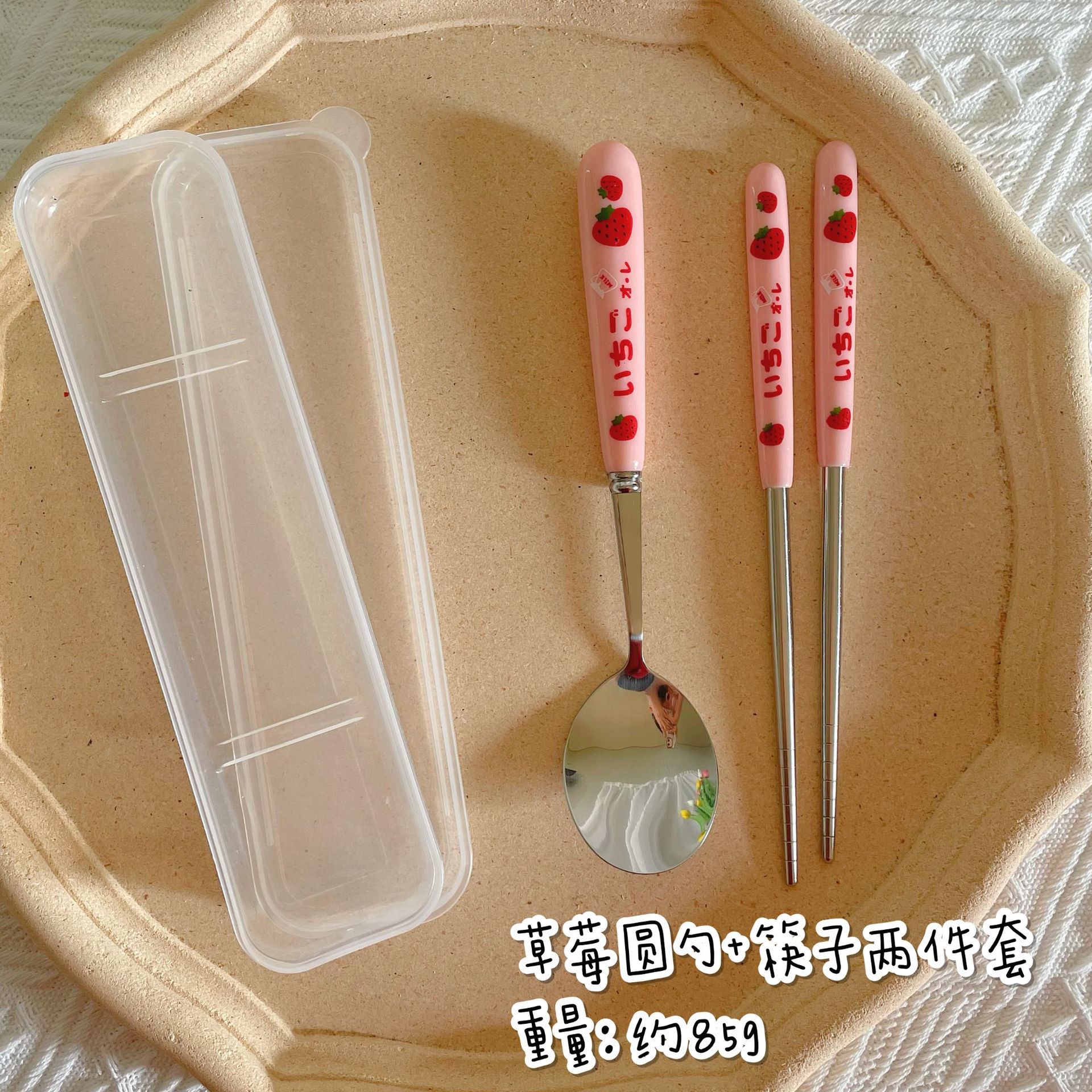 可爱卡通ins风餐具不锈钢不锈钢餐具套装精致学生勺子筷子一套
