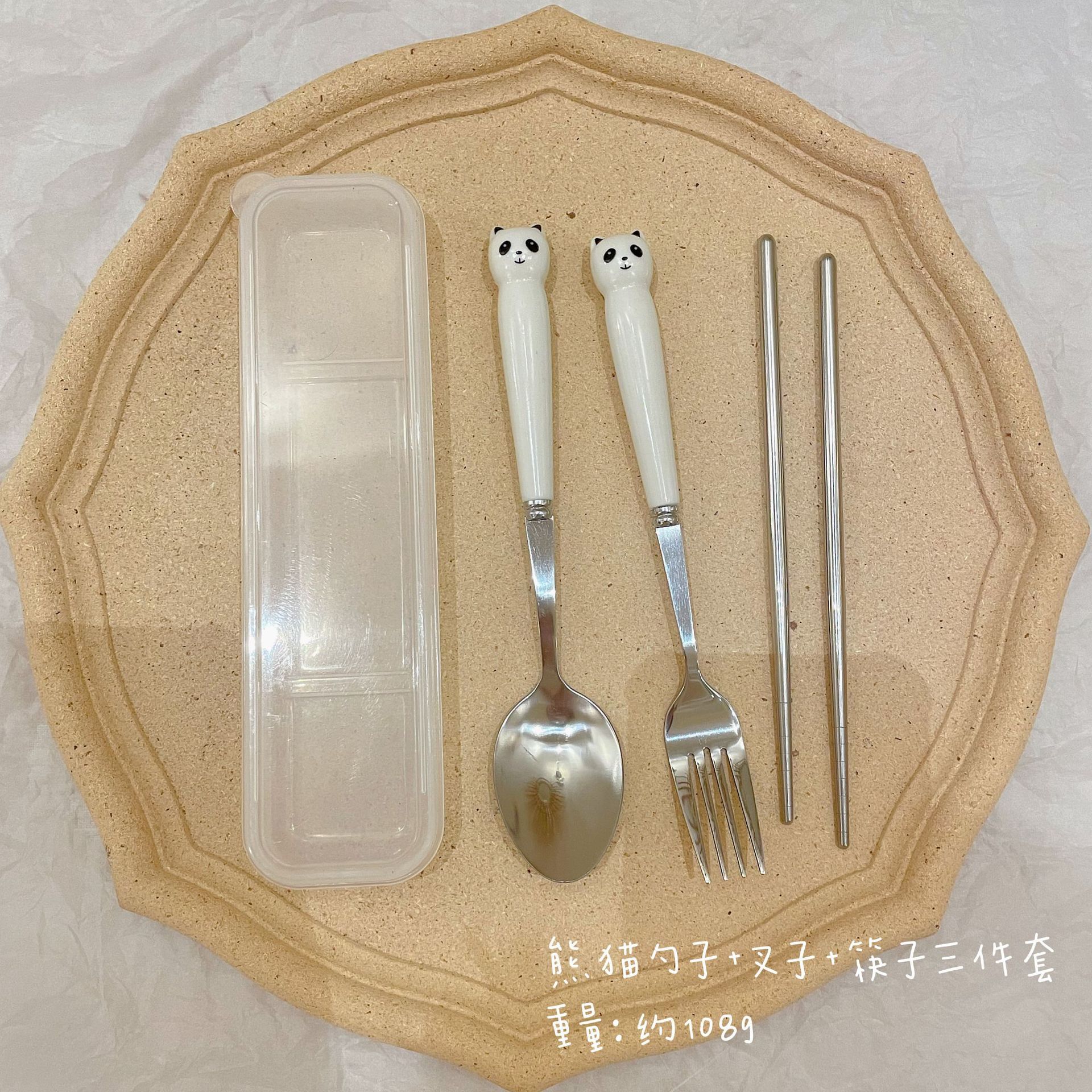 创意便携筷子餐具 礼品卡通日系勺子筷子一套陶瓷勺子不锈钢餐具