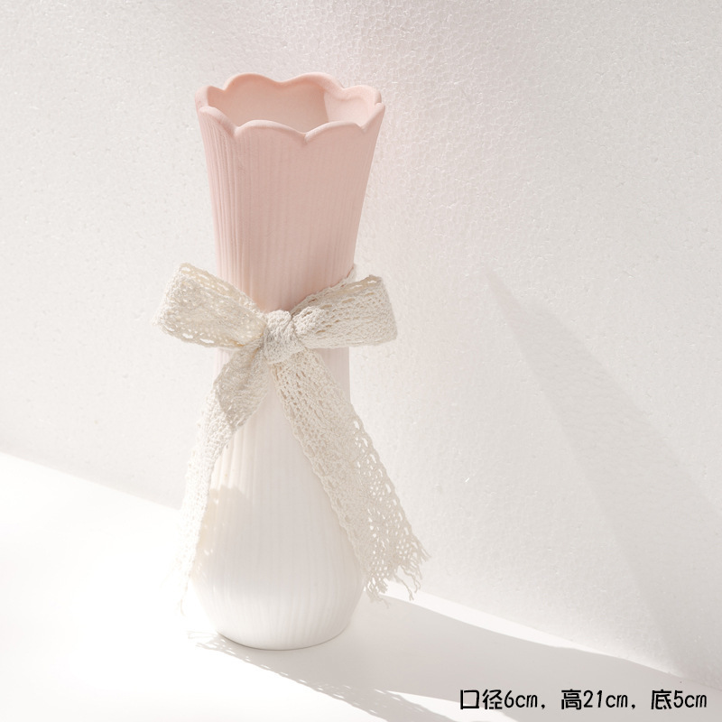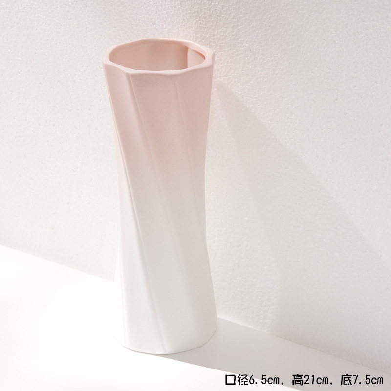 渐变粉色北欧陶瓷干花花瓶家居装饰玄关摆件摆设道具客厅插花摆设