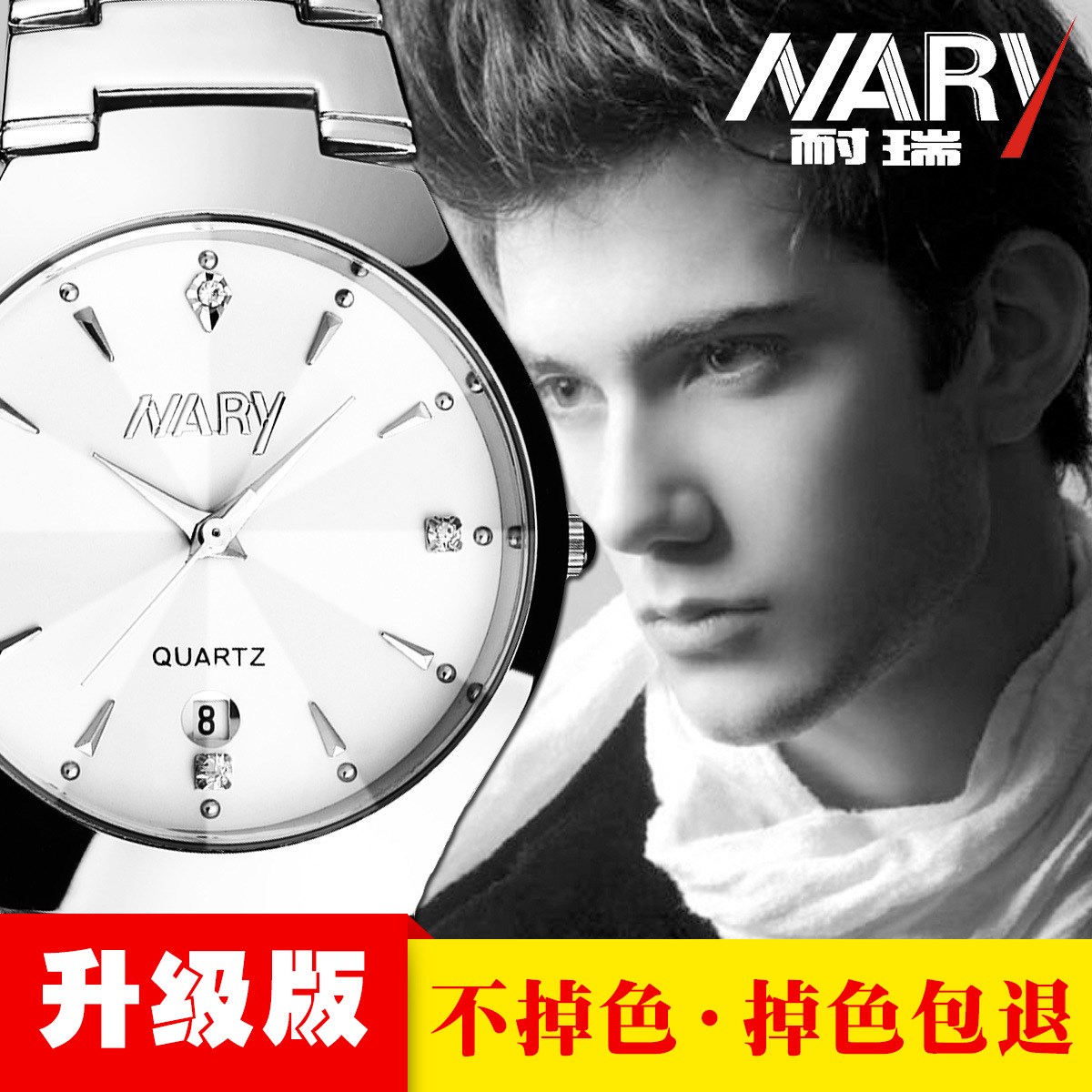 耐瑞NARY6112单历钢带手表女表防水手表男士石英情侣表