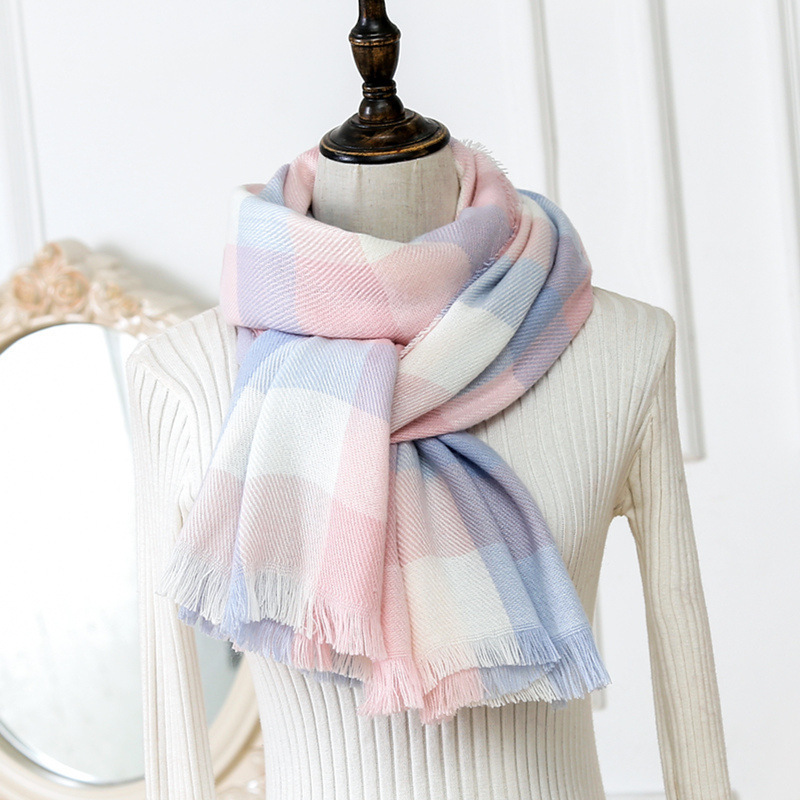 日系秋冬季加厚格子围巾加厚格子围巾披肩