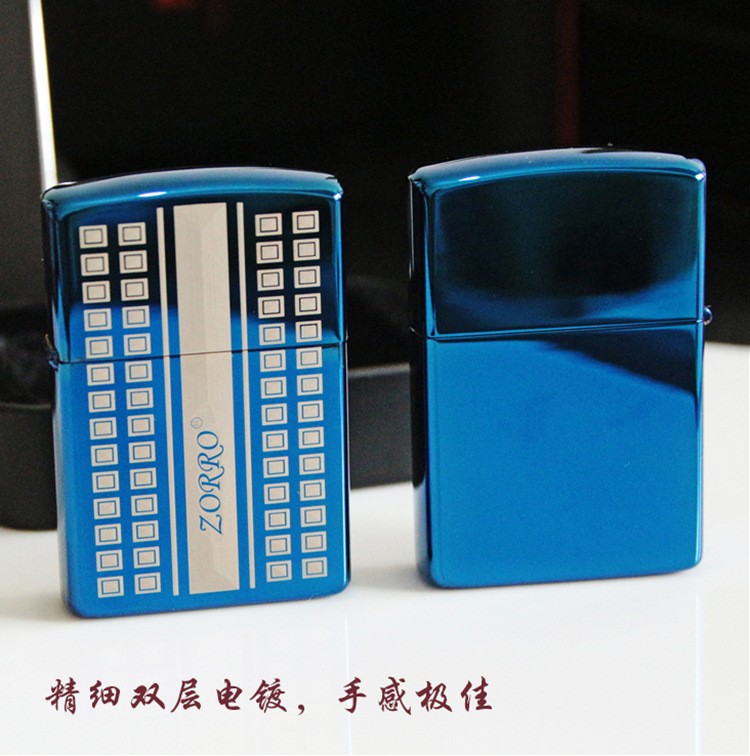 正品Z8654B蓝冰方块标 高档纯铜煤油打火机