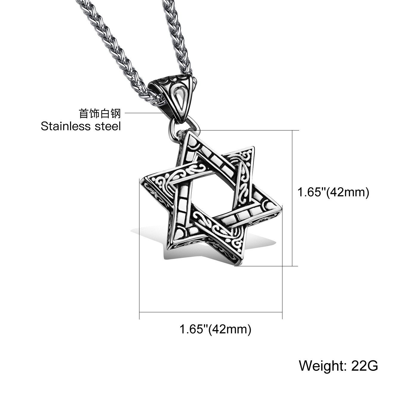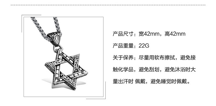 六芒星吊坠 同款个性男士钛钢项链=1003