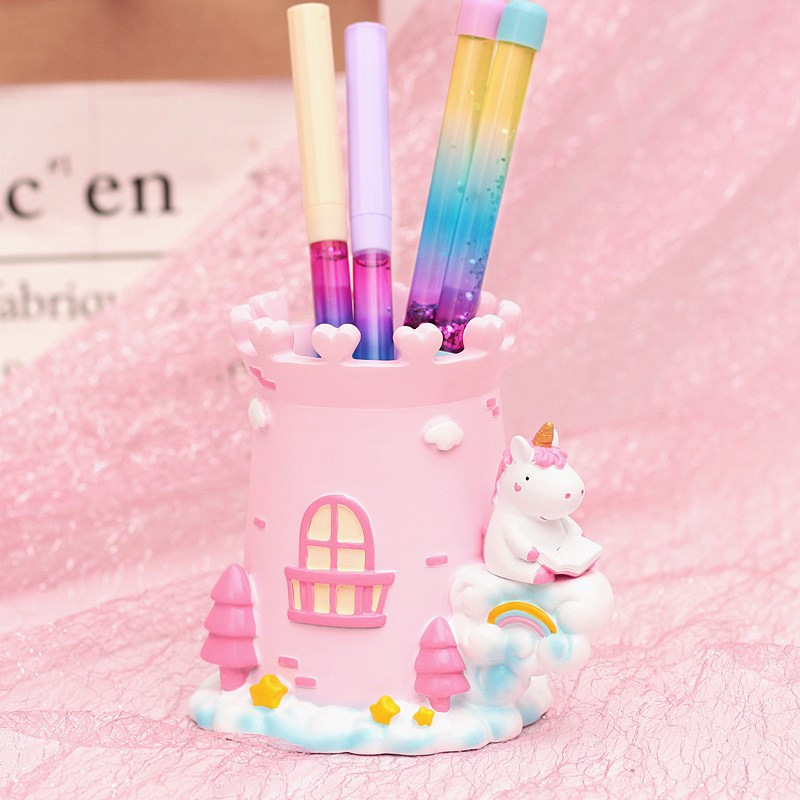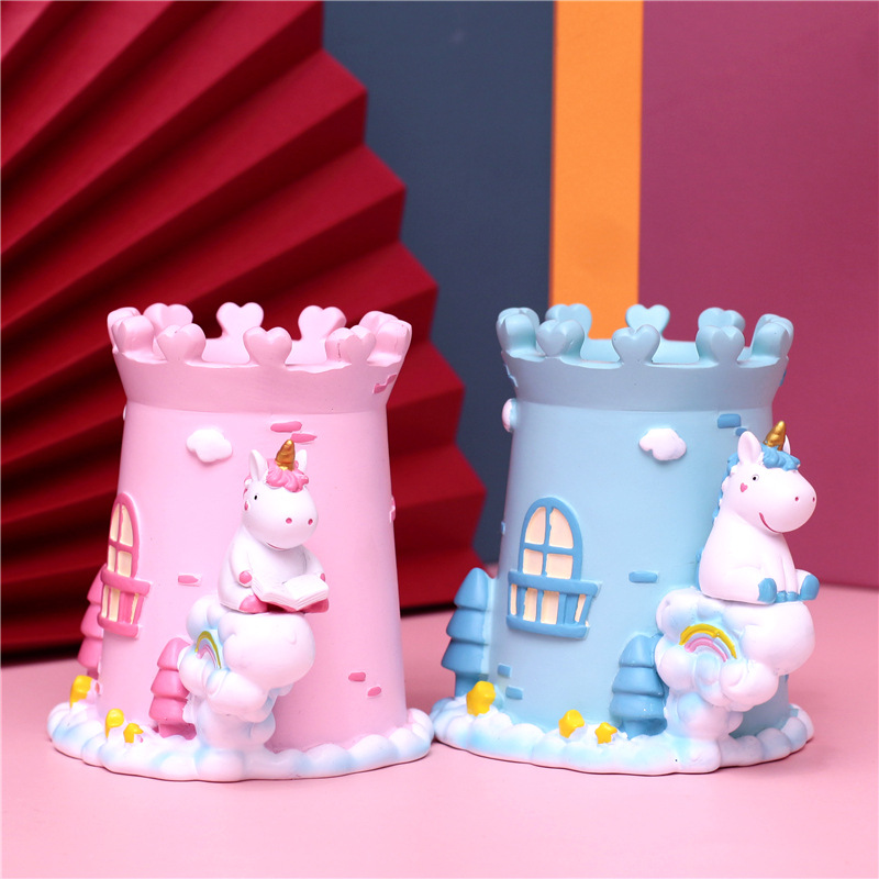 梦幻少女心城堡独角兽桌面摆件笔筒=9021-1A 9021-1B