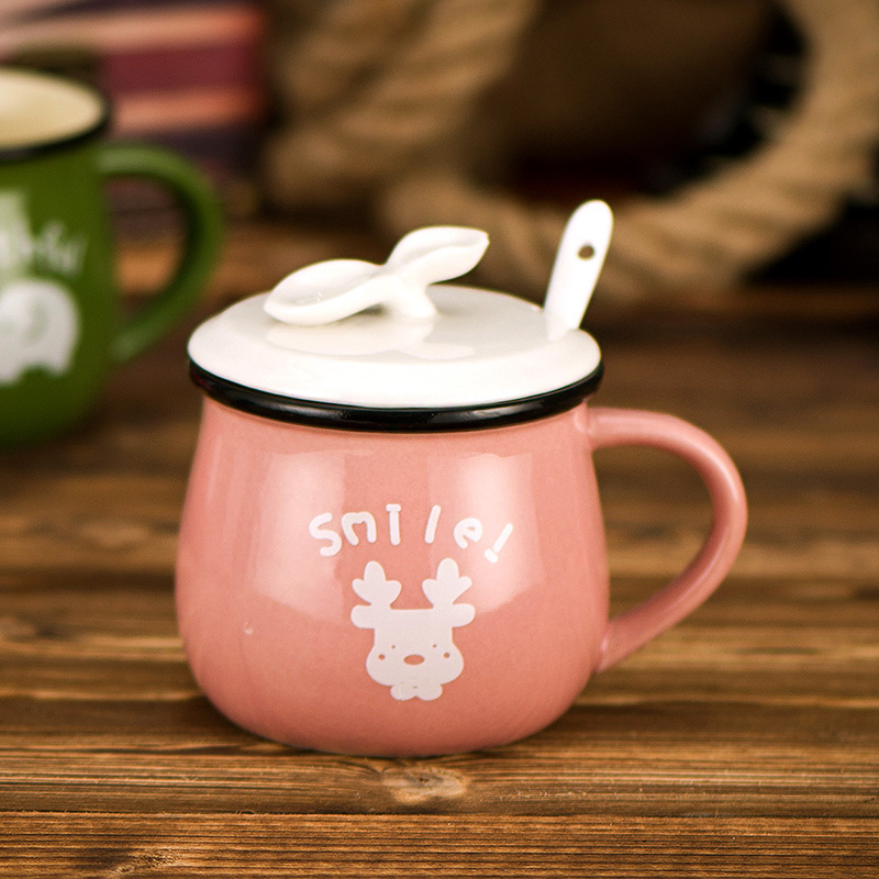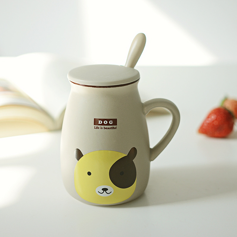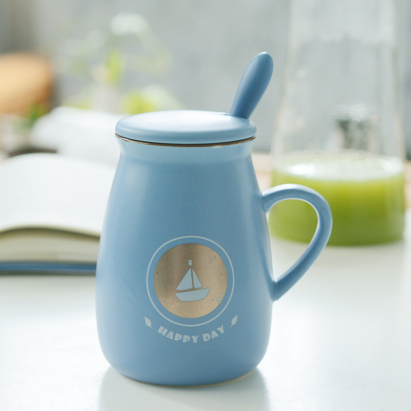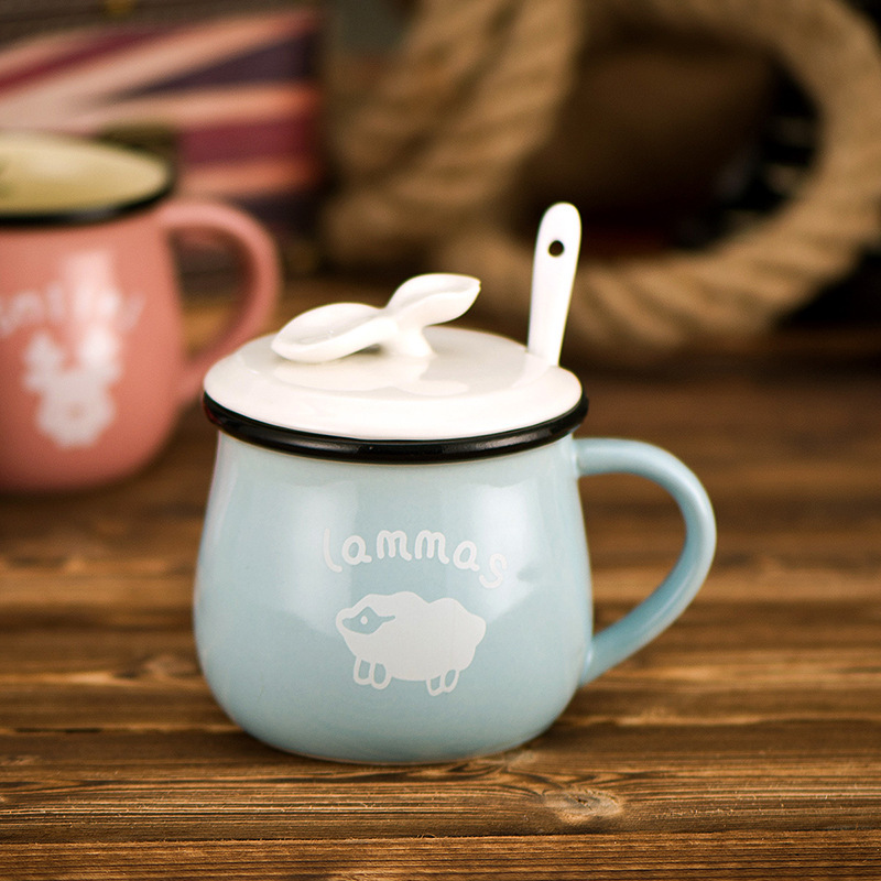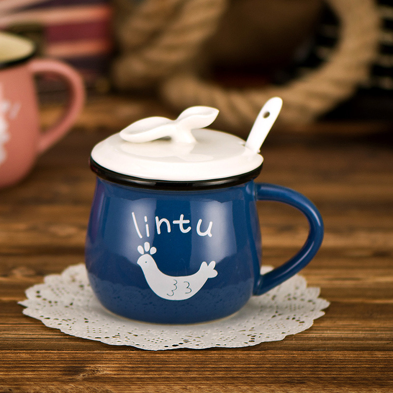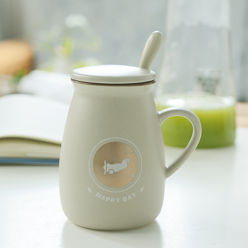 陶瓷杯 牛奶杯 马克杯 杯子水杯带盖勺子=001