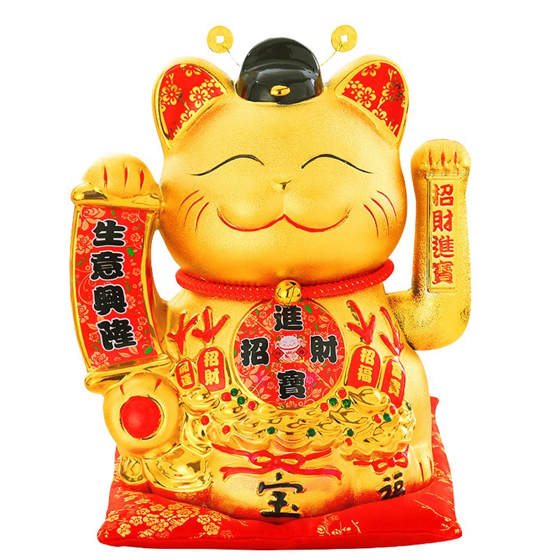 金色陶瓷招财猫摆件开业大号店铺收银台礼品电动摇手=1115