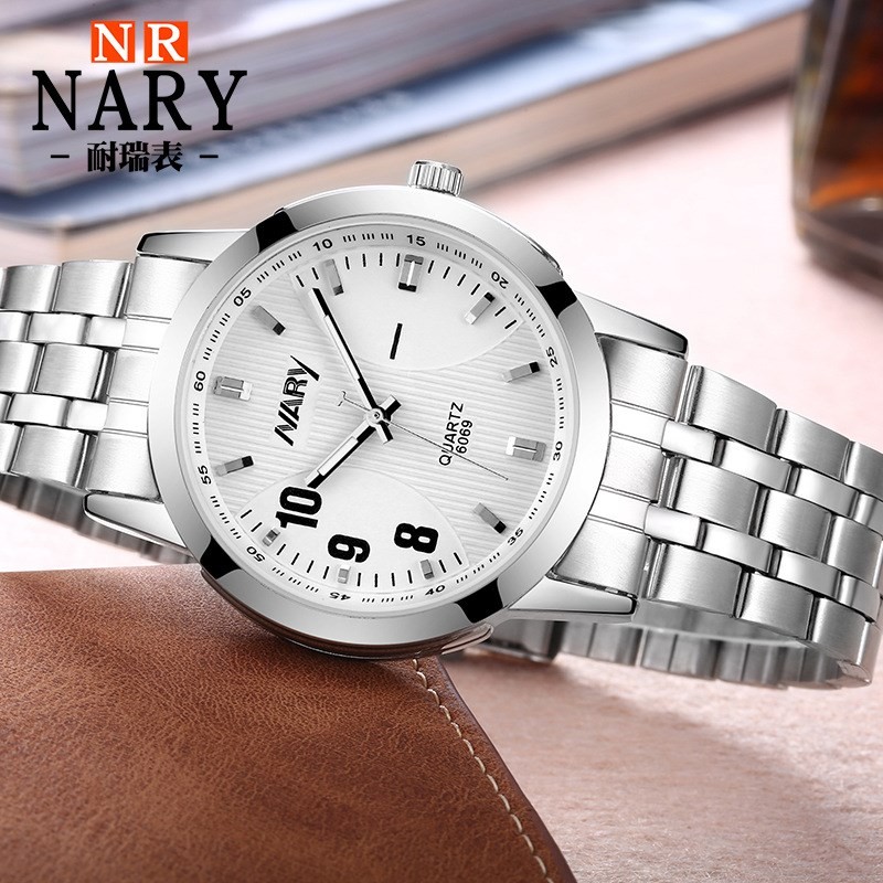 耐瑞NARY6069钢带手表女表防水手表男士石英情侣表