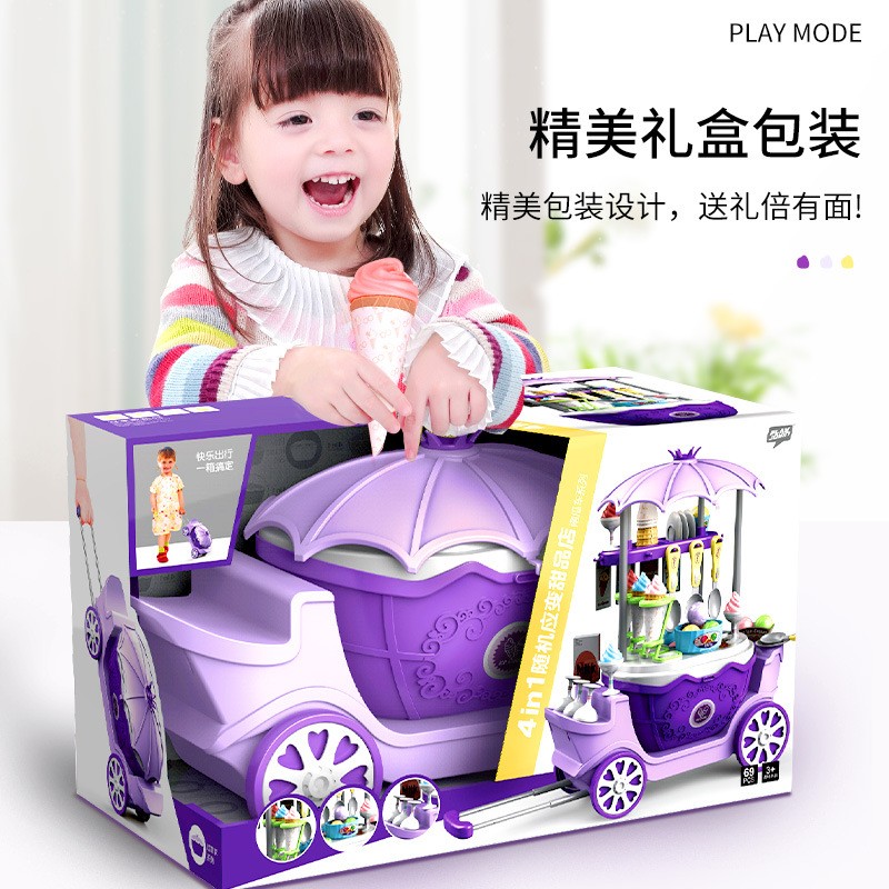 儿童过家家拉杆小推车玩具梳妆厨房雪糕车宝宝过家家冰淇淋公主车
