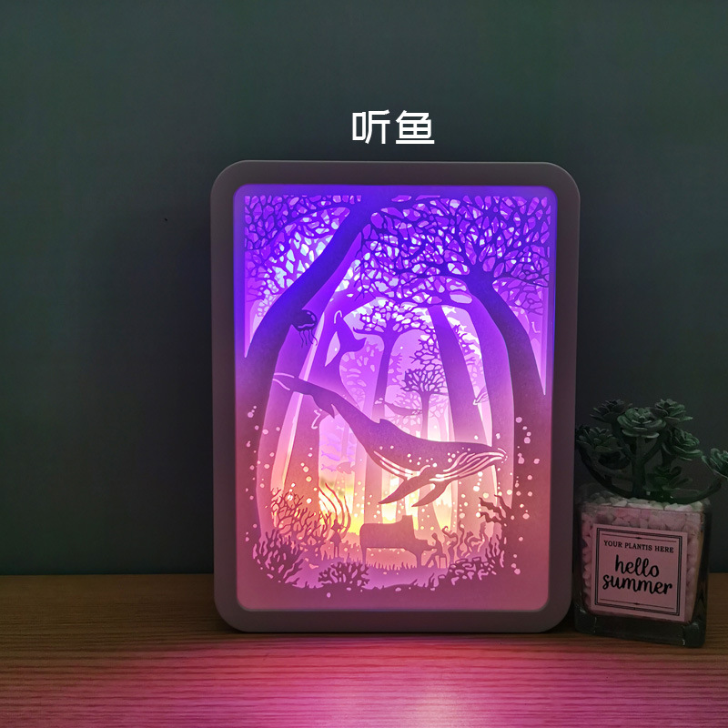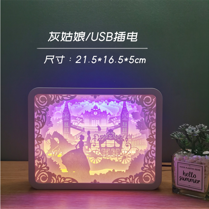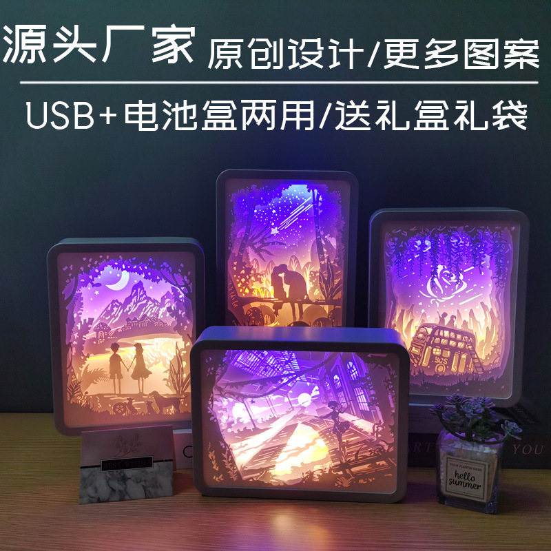 创意光影纸雕灯马卡龙3d立体剪纸叠影小夜灯情侣节日礼品装饰台灯:纸雕灯-USB