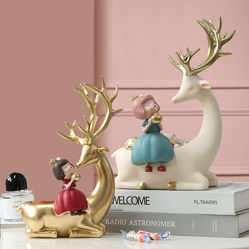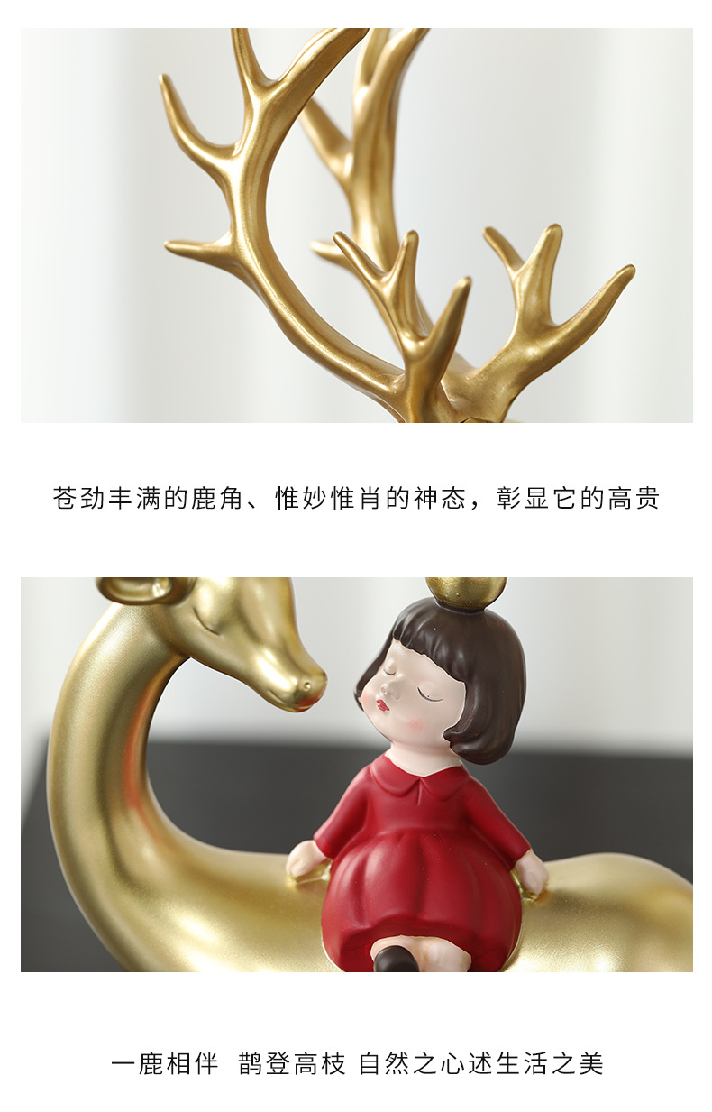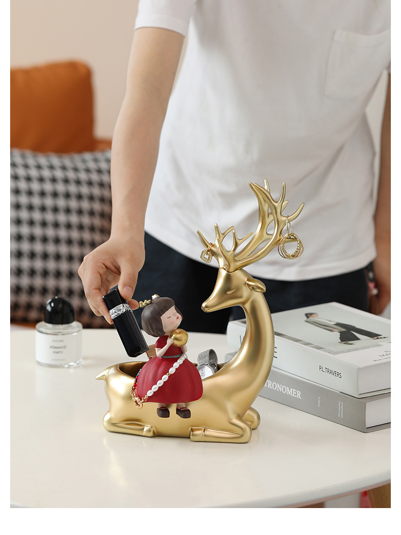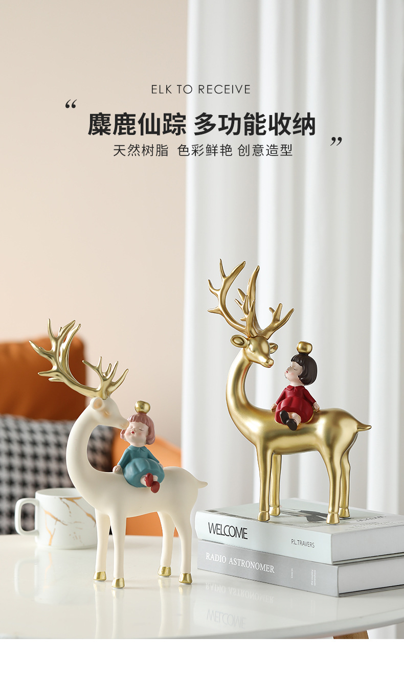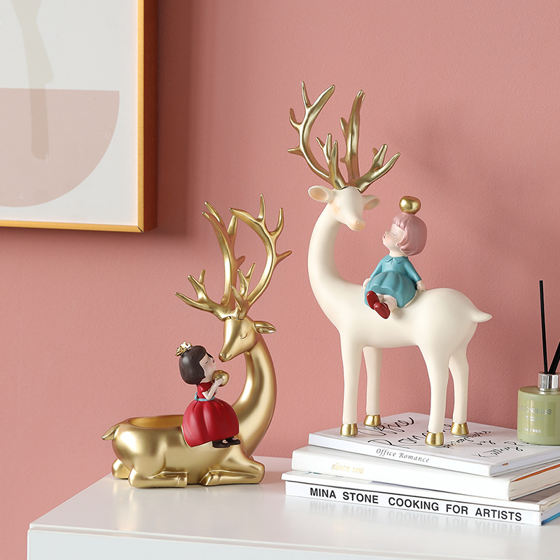 麋鹿女孩创意摆件轻奢玄关收纳客厅电视酒柜家居饰品乔迁新居礼品