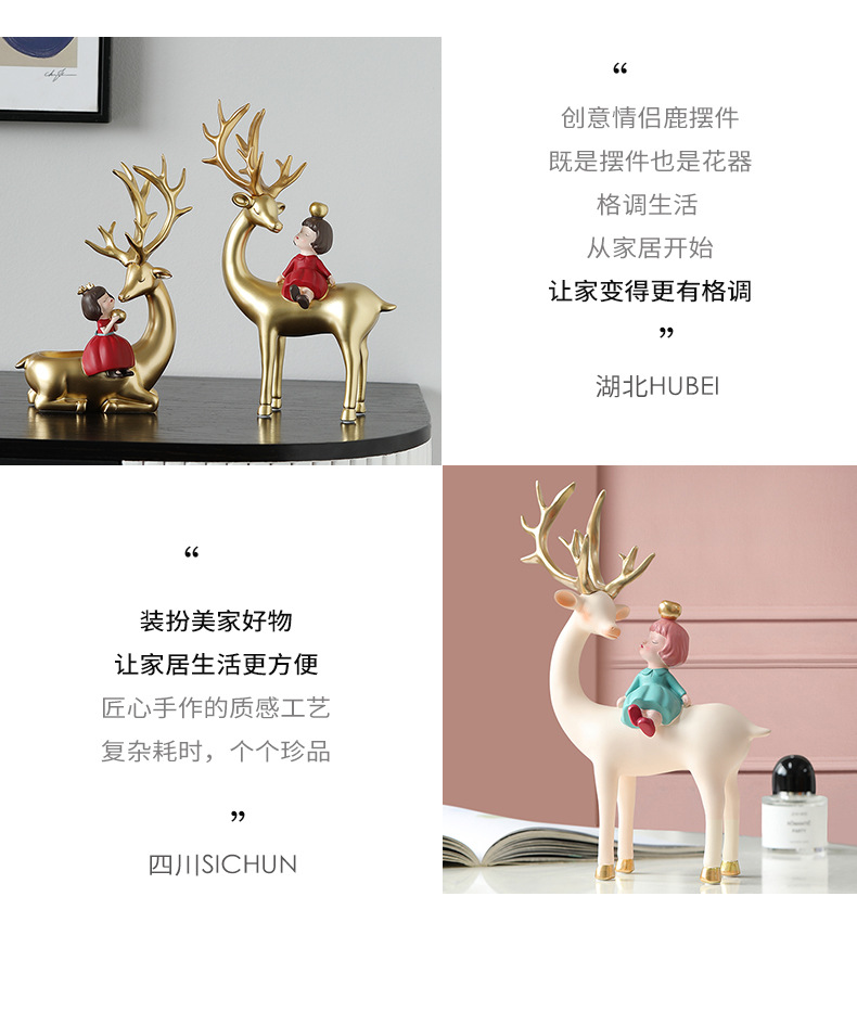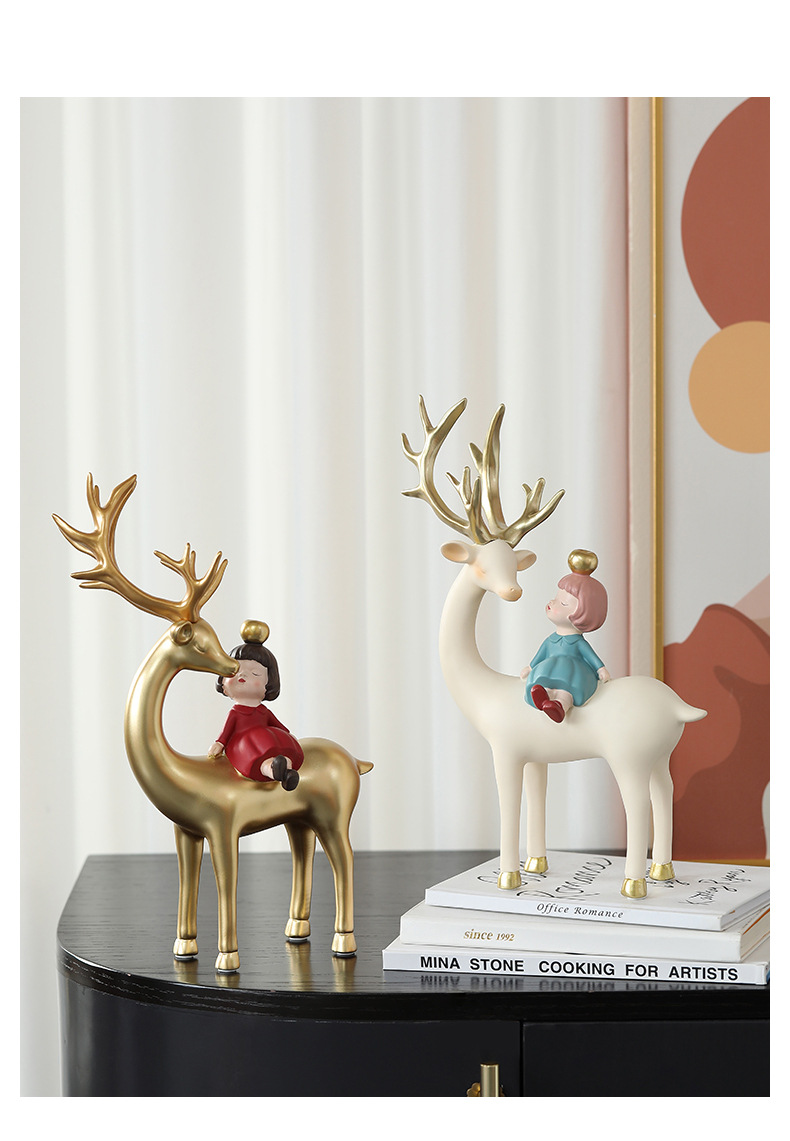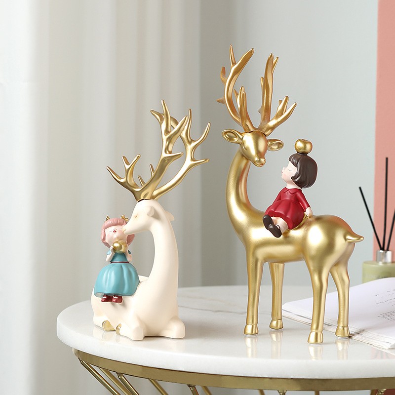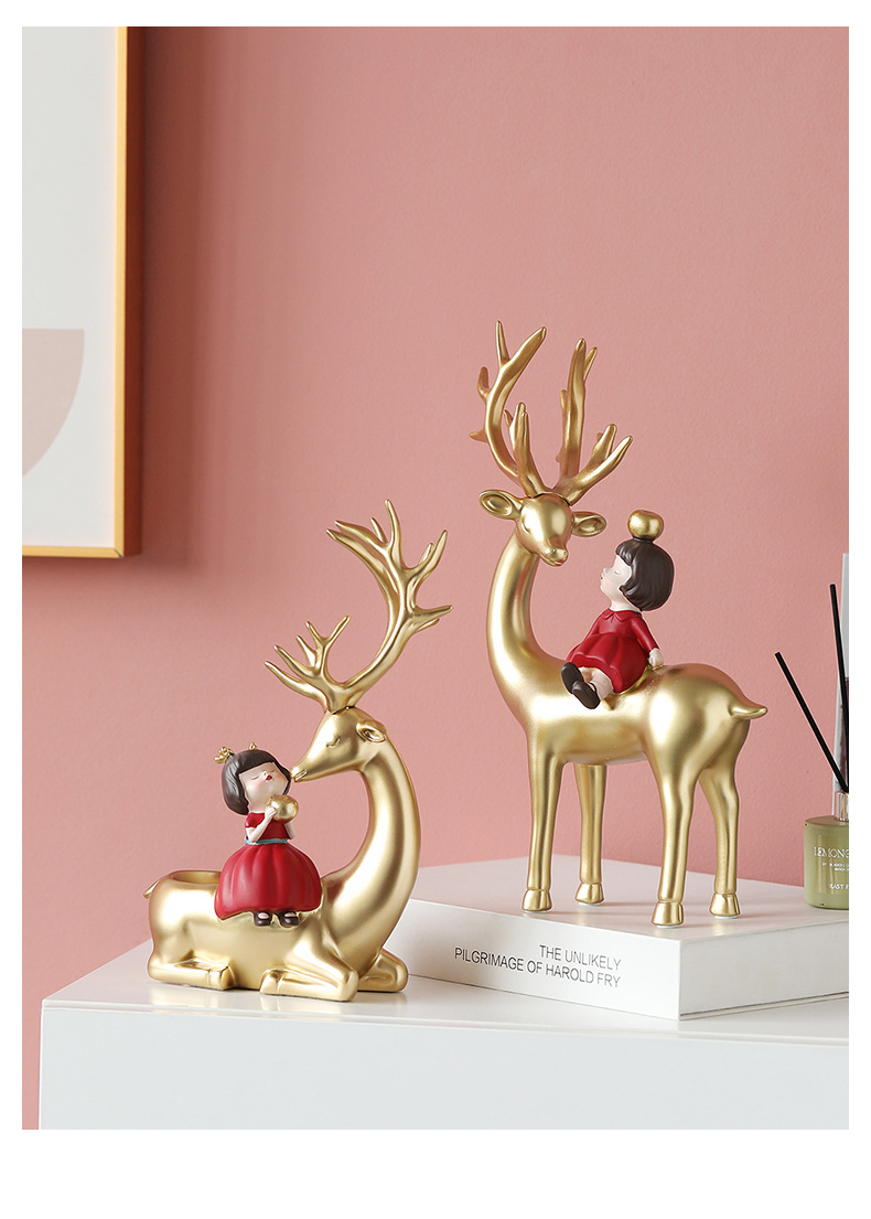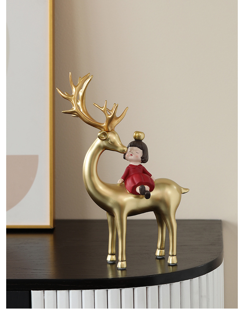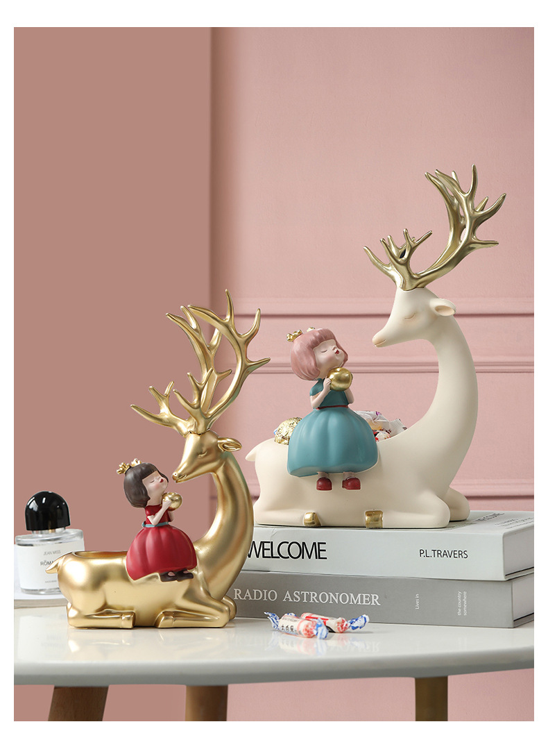 麋鹿女孩创意摆件轻奢玄关收纳客厅电视酒柜家居饰品乔迁新居礼品