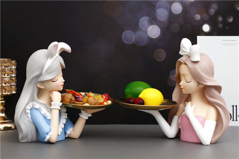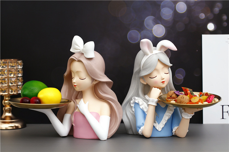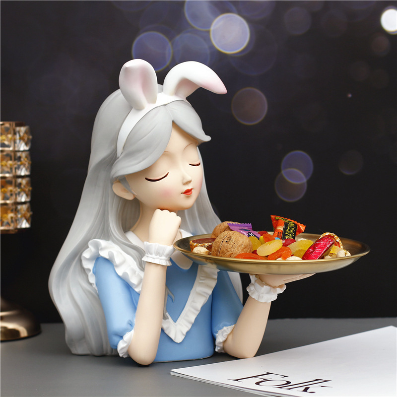 创意洛丽塔少女收纳新款喜庆摆件鞋柜桌面玄关钥匙零食装饰摆件=J021B蓝色爱丽丝