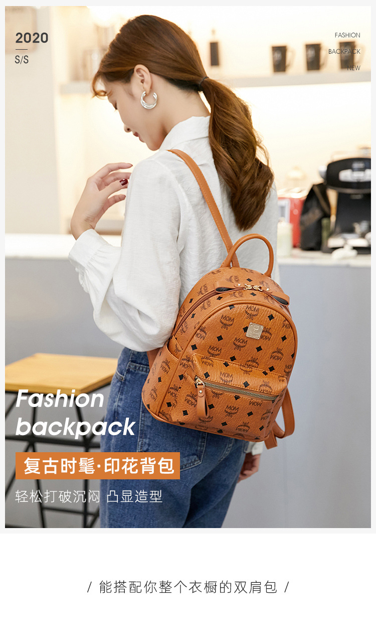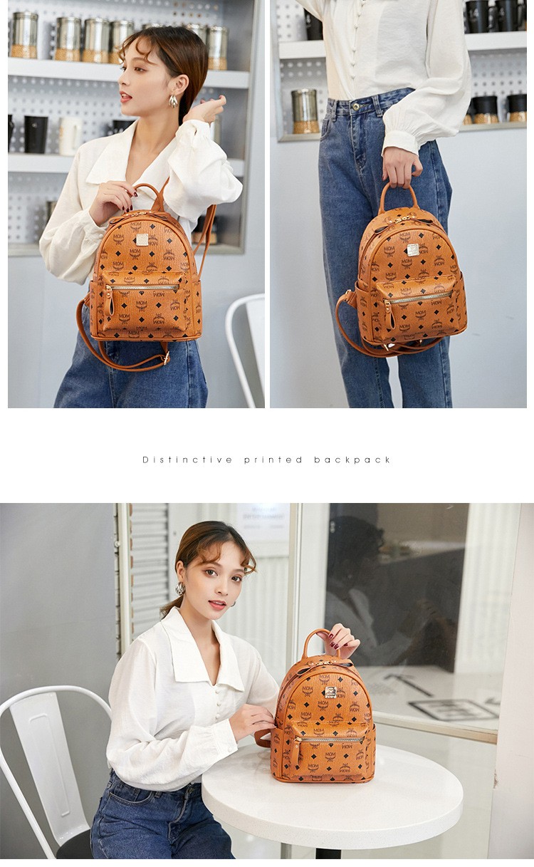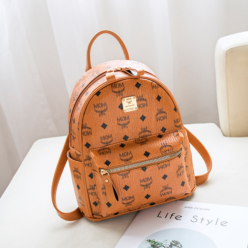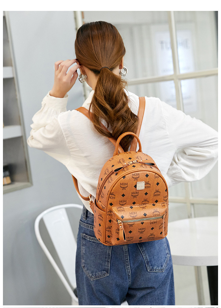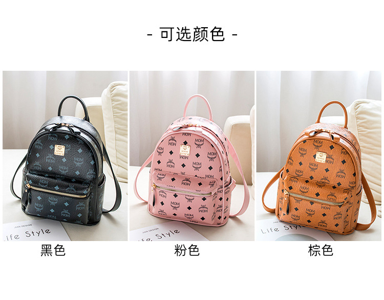 双肩包女韩版时尚pu皮书包新款潮流印花休闲旅行女士背包C056#