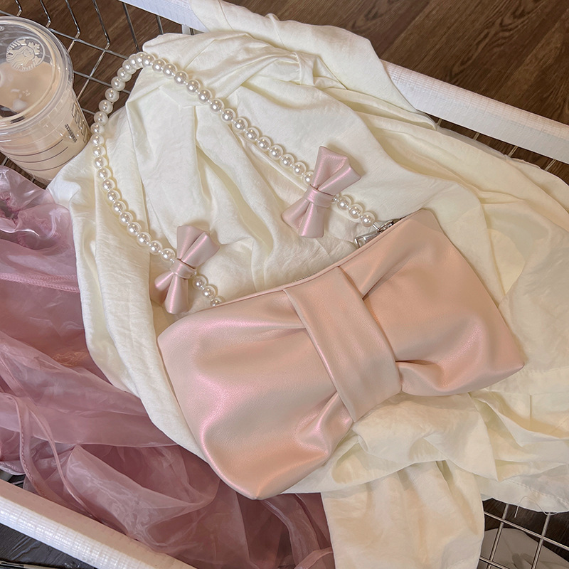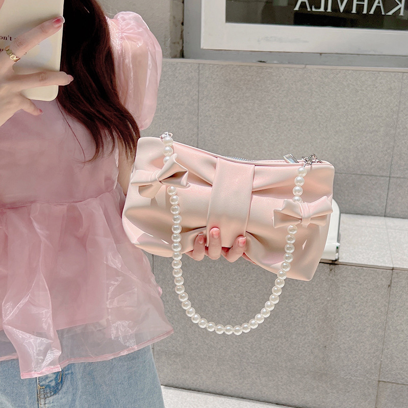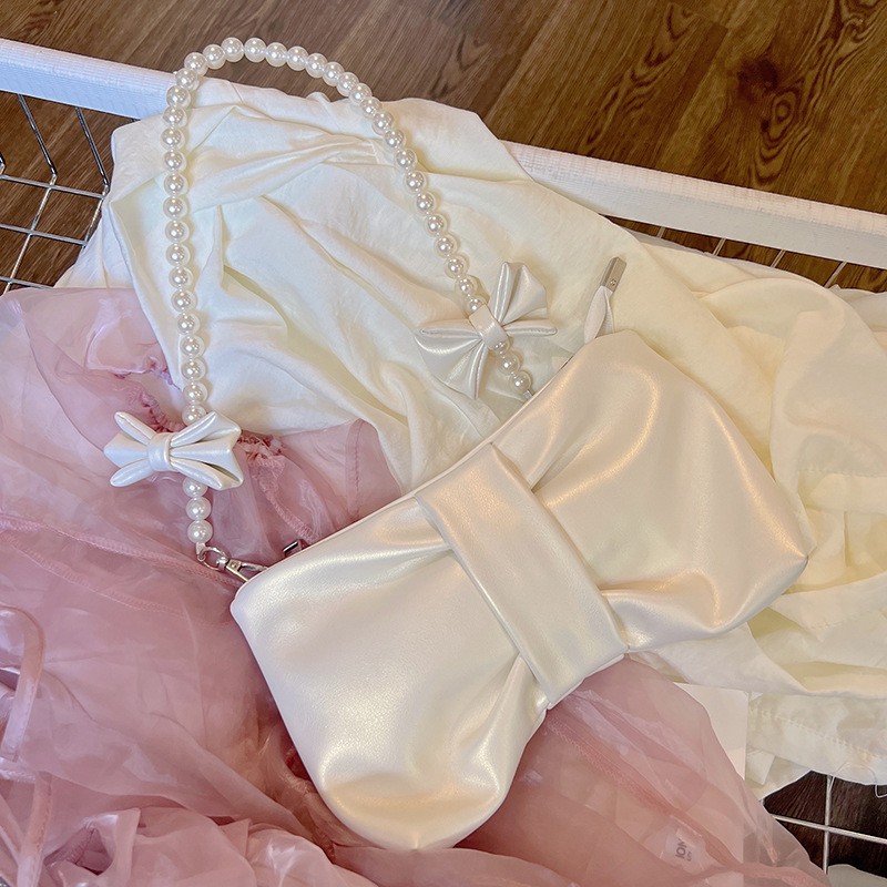 少女珍珠蝴蝶结腋下女包新款小清新仙女包韩版单肩手提斜挎包