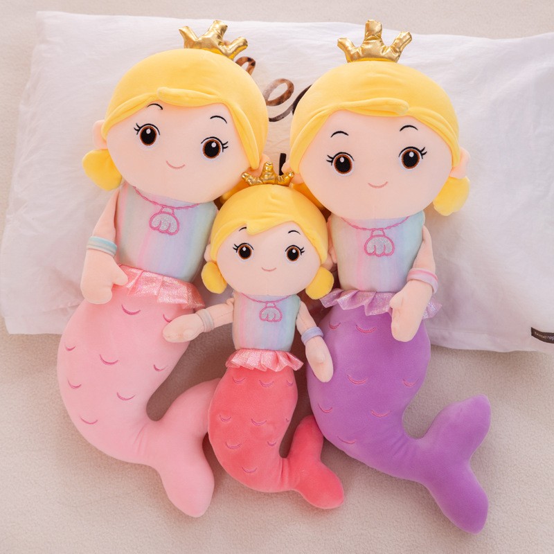 可爱美人鱼公仔毛绒玩具皇冠美人鱼玩偶陪睡布娃娃生日礼物