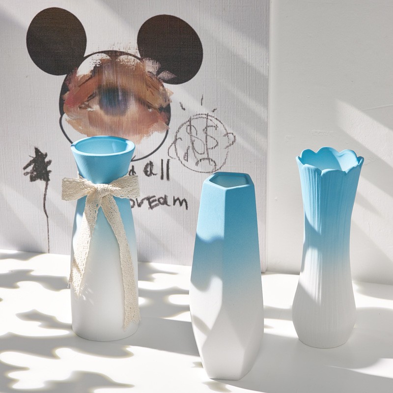 北欧蓝色渐变白色陶瓷干花花瓶民宿客厅插花玄关装饰摆件摆设