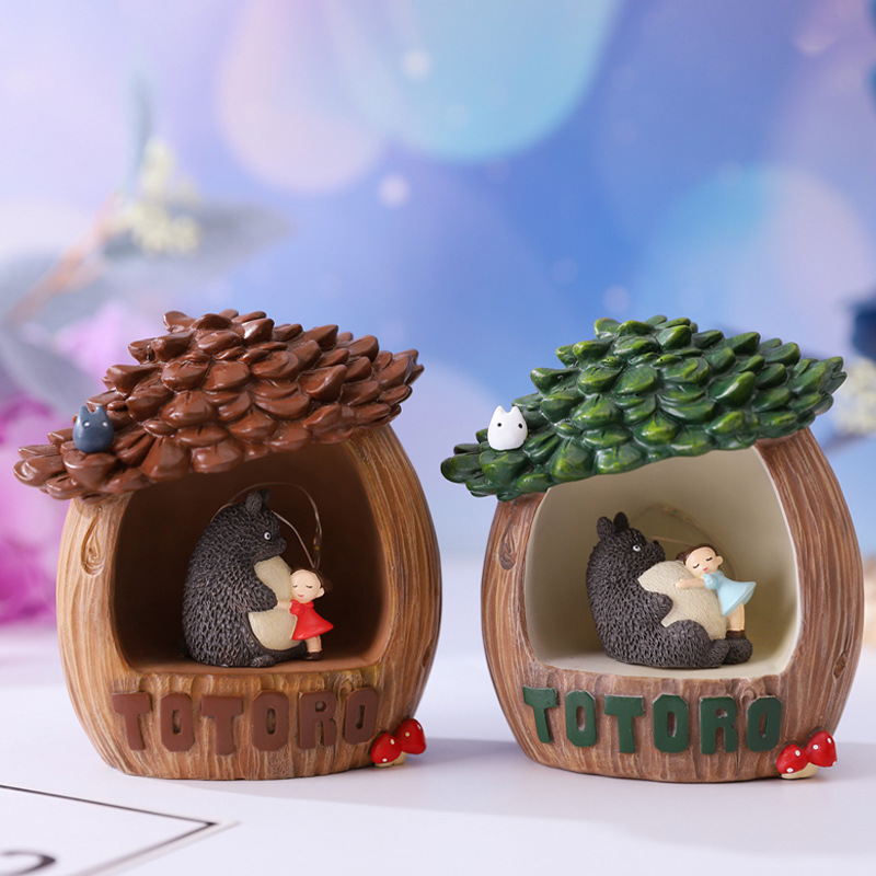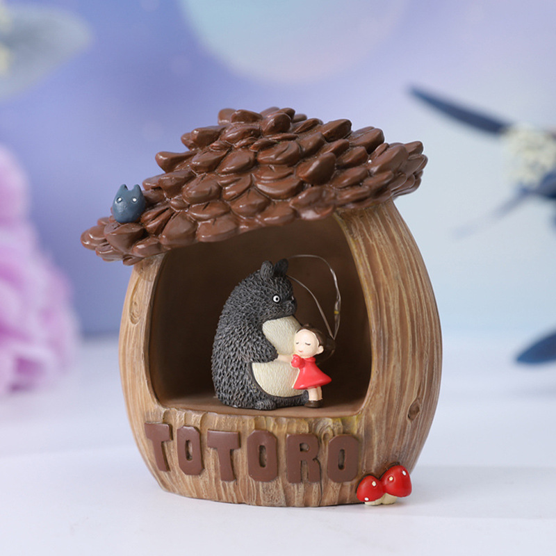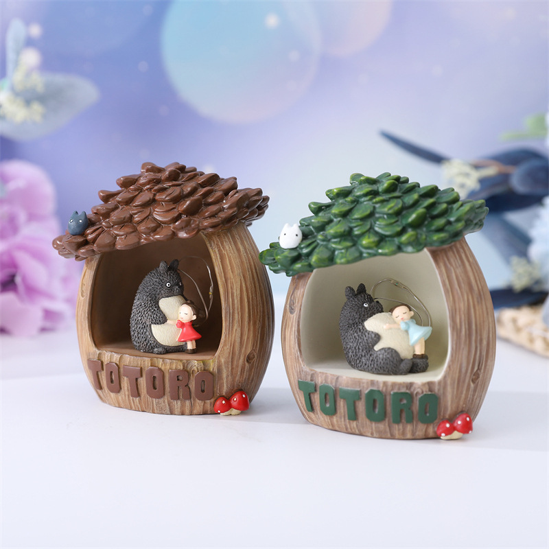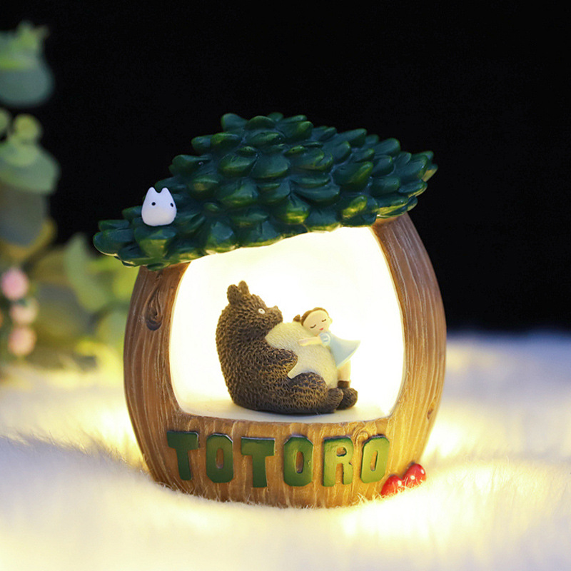 网红新款树屋星星灯可爱调皮小女孩抱大肚猫床头柜小夜灯摆件
