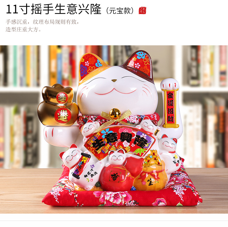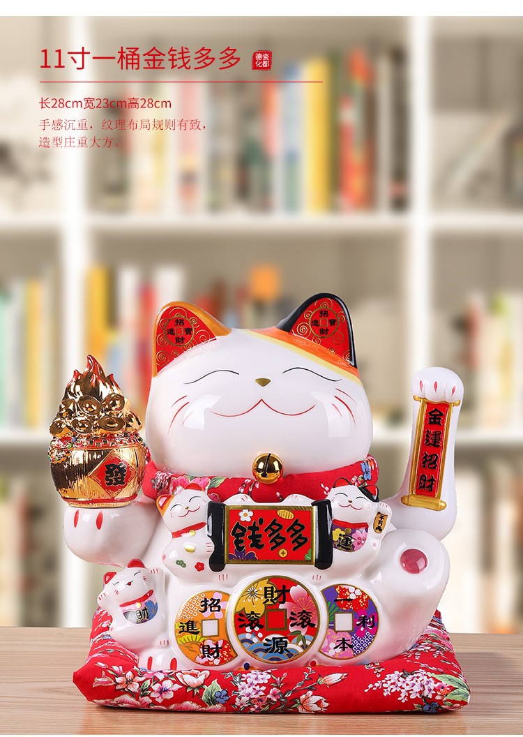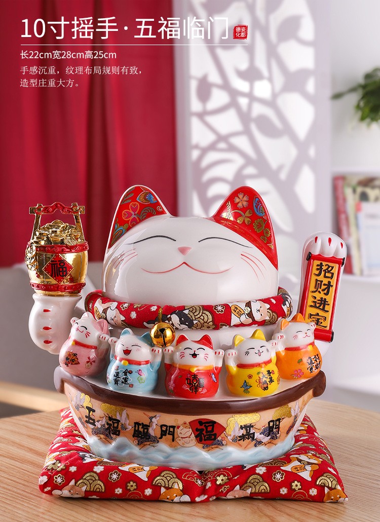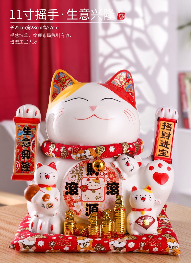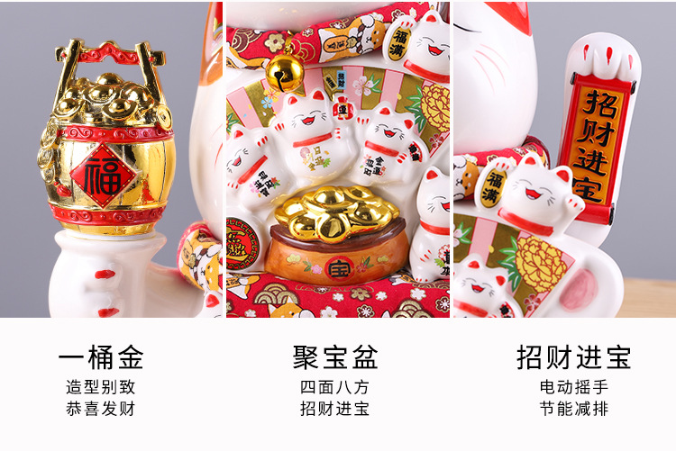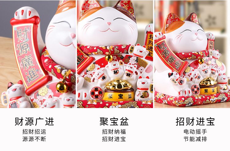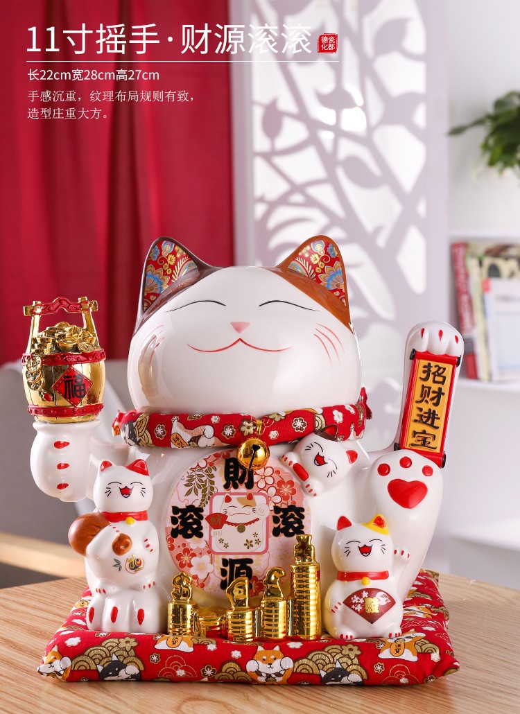 陶瓷摇手招财猫摆件开业大小号店铺收银台家居客厅礼品自动招手【WSJ818】