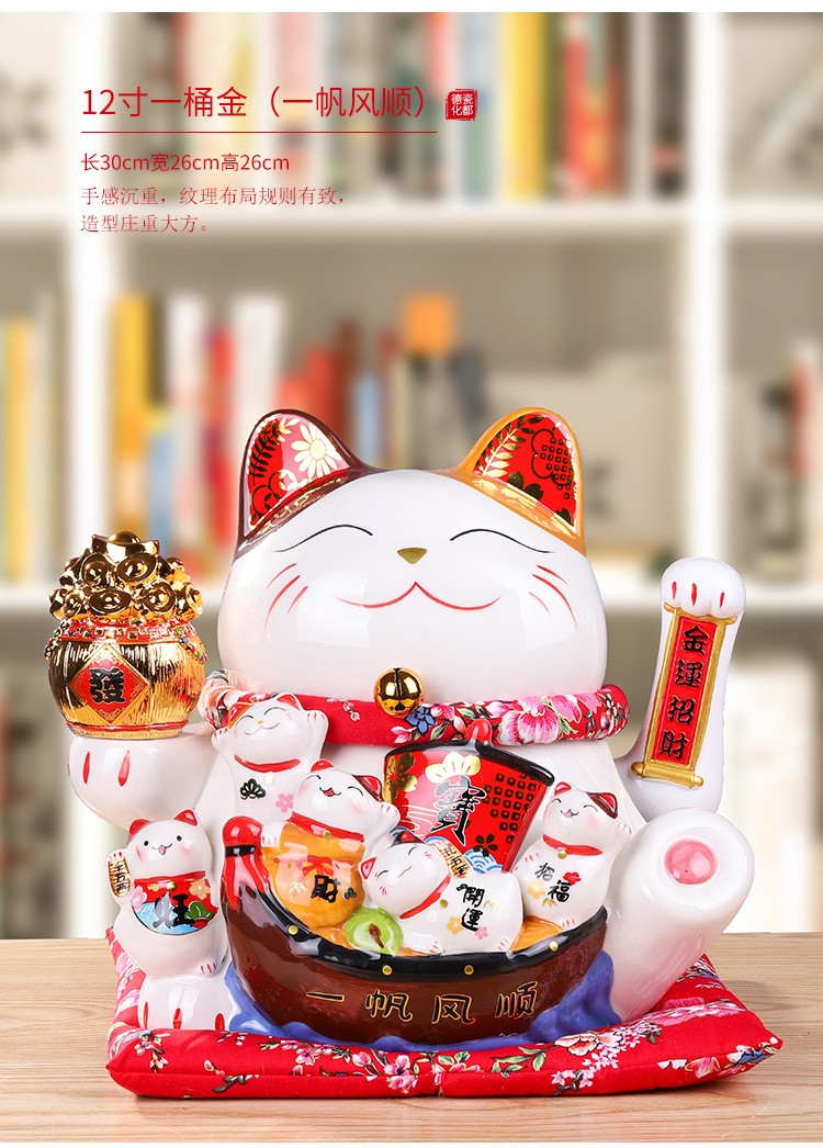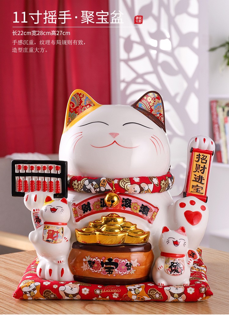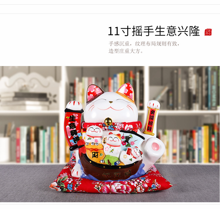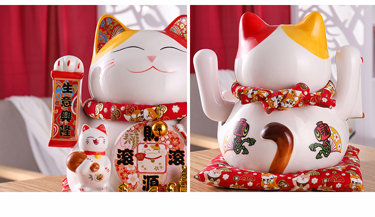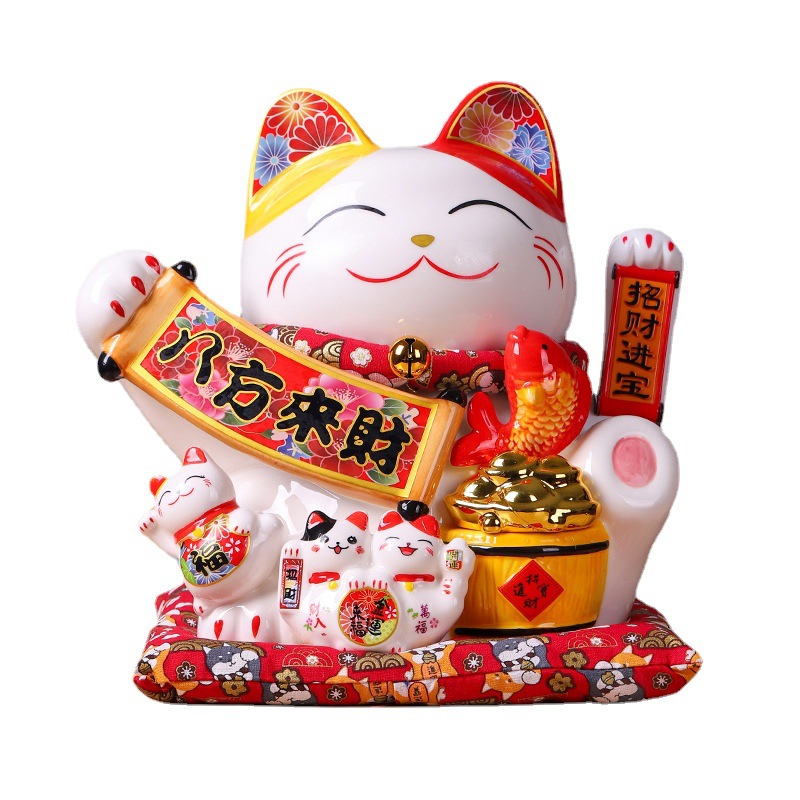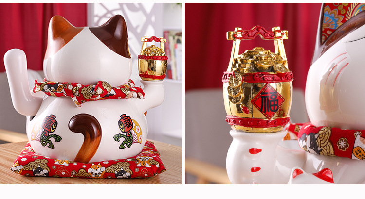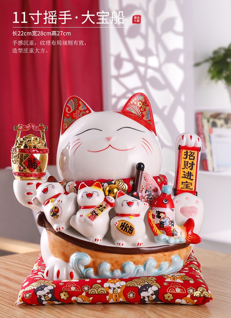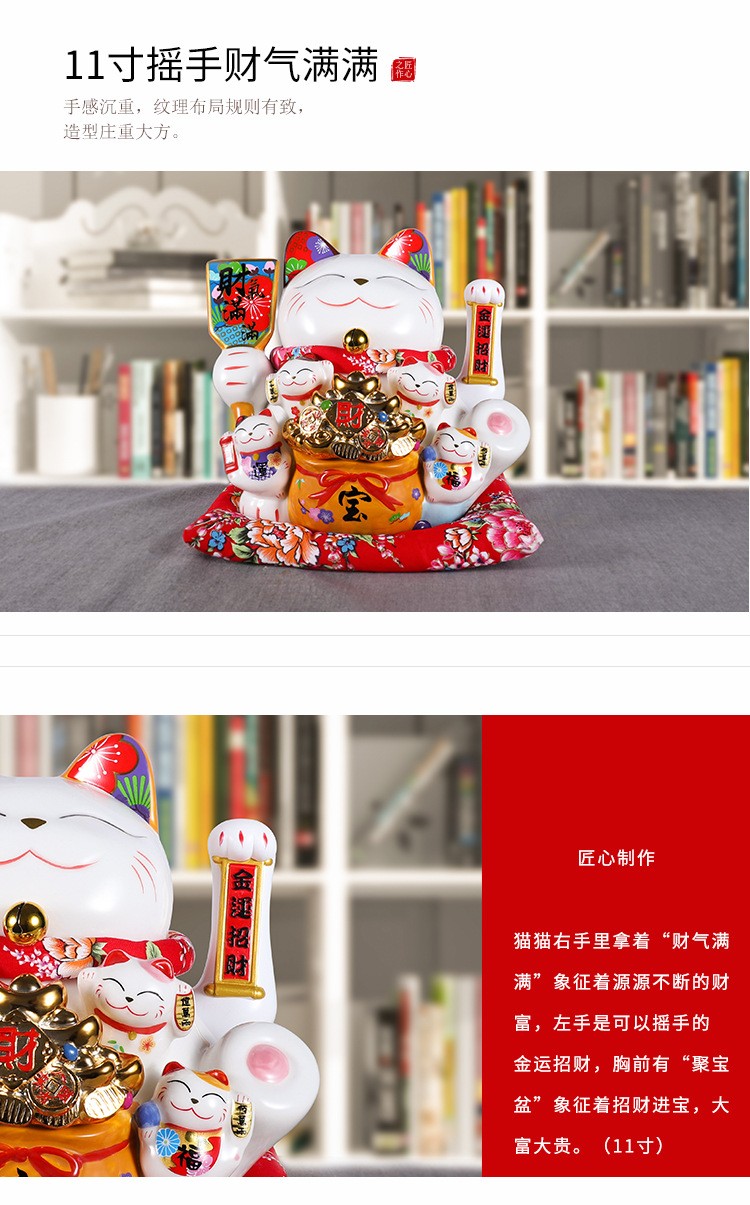 陶瓷摇手招财猫摆件开业大小号店铺收银台家居客厅礼品自动招手【WSJ818】