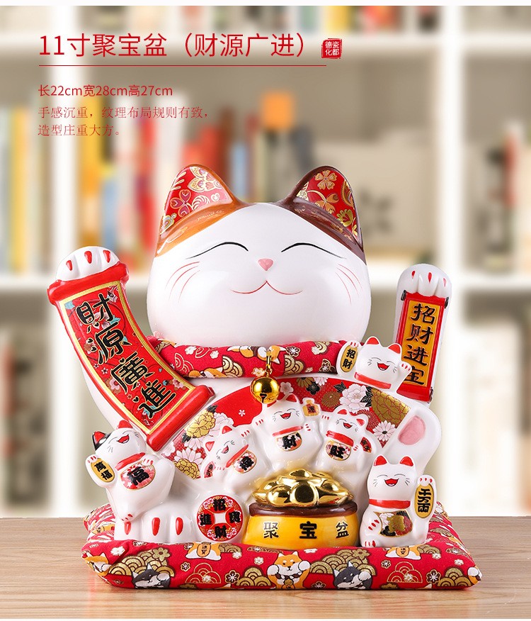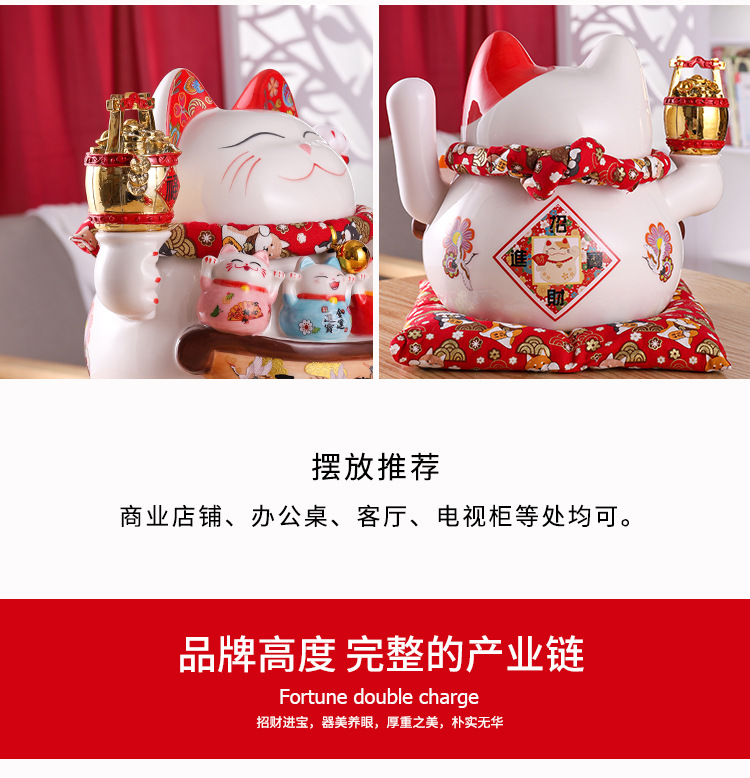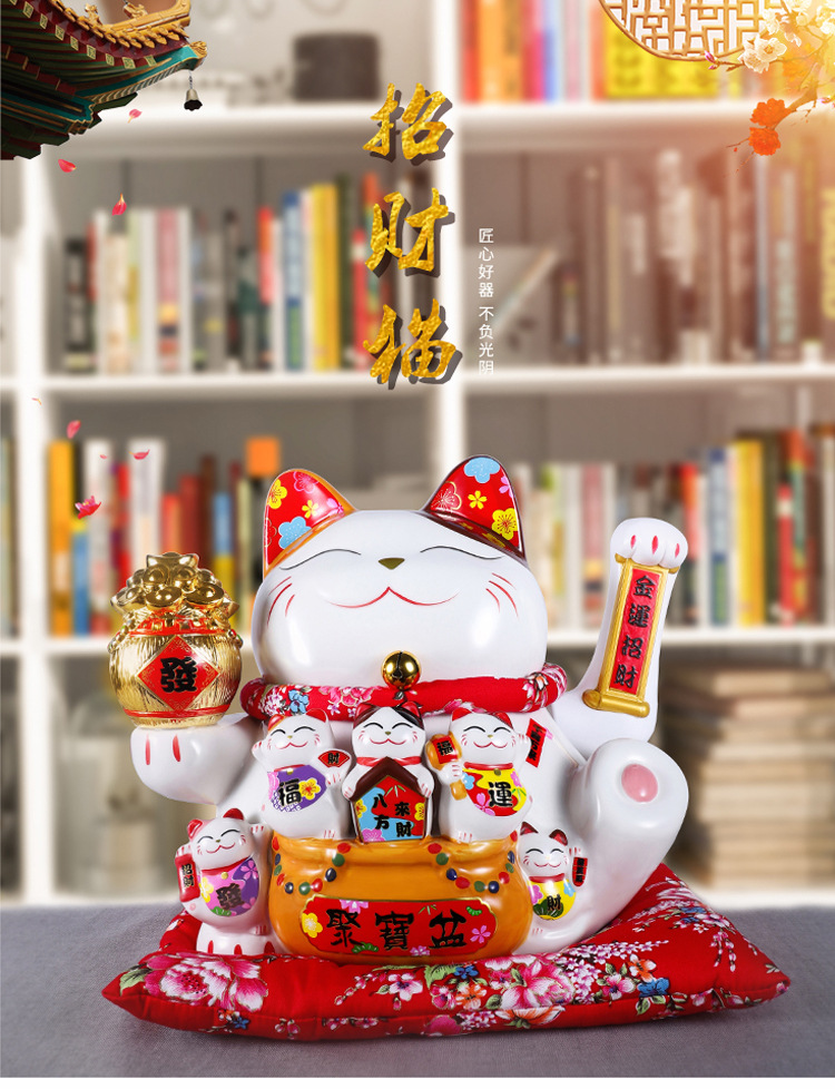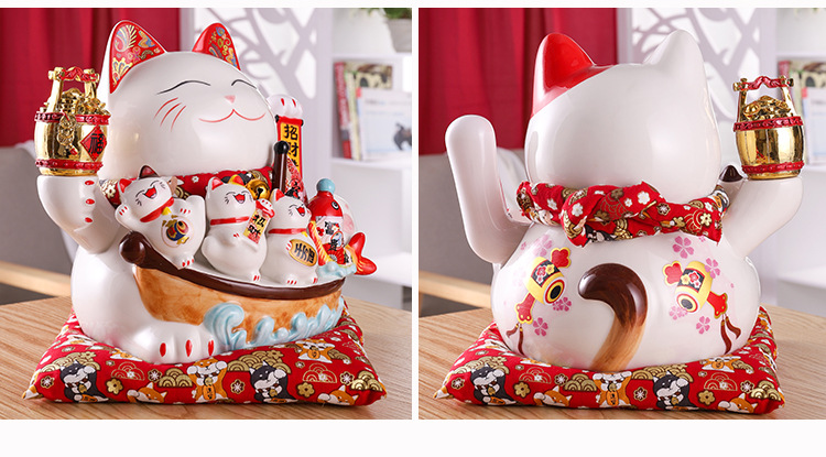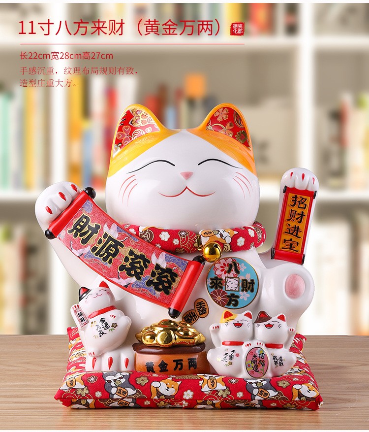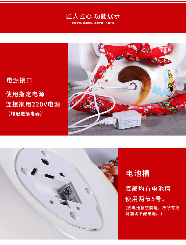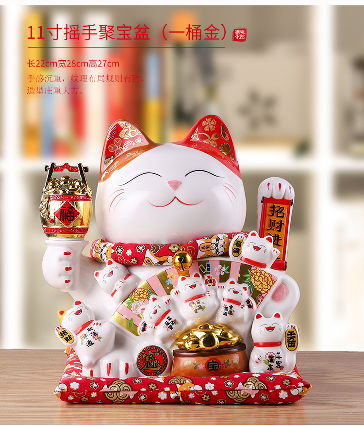 陶瓷摇手招财猫摆件开业大小号店铺收银台家居客厅礼品自动招手【WSJ818】