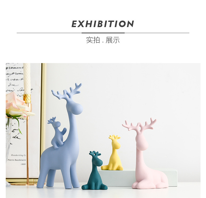 北欧陶瓷摆件酒柜儿童房动物家居装饰品创意礼品送人礼盒麋鹿摆设【色泥五口鹿】