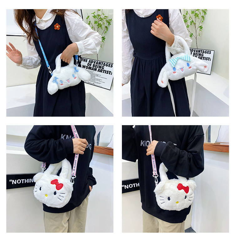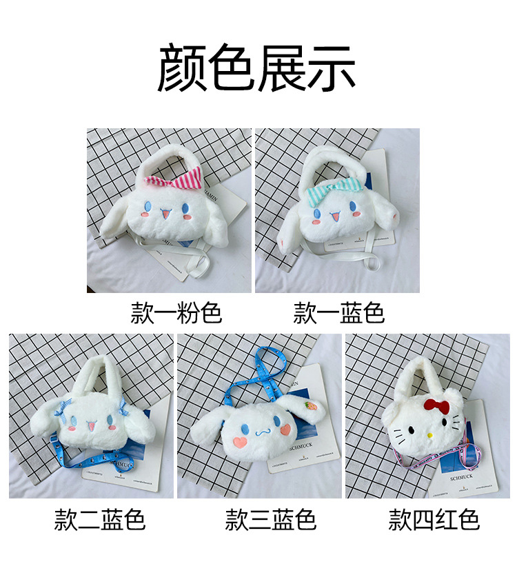 日系卡通可爱蝴蝶结玉桂狗毛绒包包女2022新款日系甜美少女斜挎包【2995b】