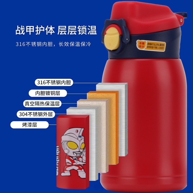 奥特曼 儿童保温杯316食品级男孩水杯带吸管幼儿园小学生上学专用// 了-