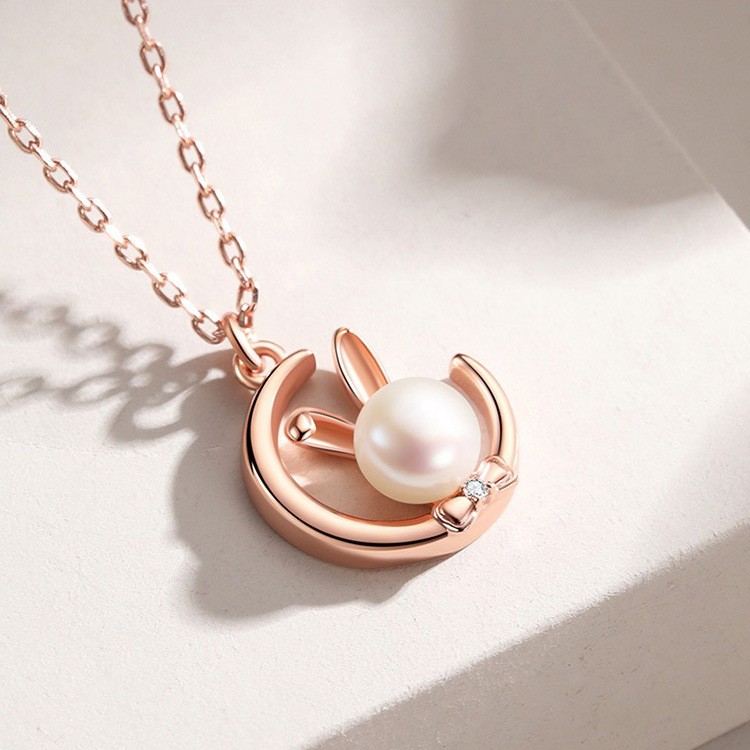 s925纯银珍珠月亮兔子项链女ins本命年生肖兔轻奢小众设计锁骨链