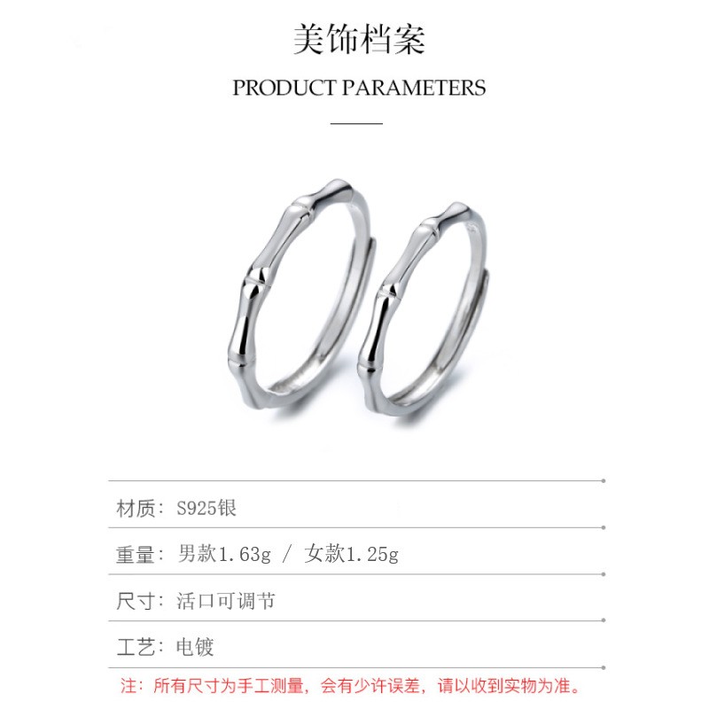 s925纯银竹节戒指情侣一对简约小众设计感ins有你竹够对戒 送女友【S157】